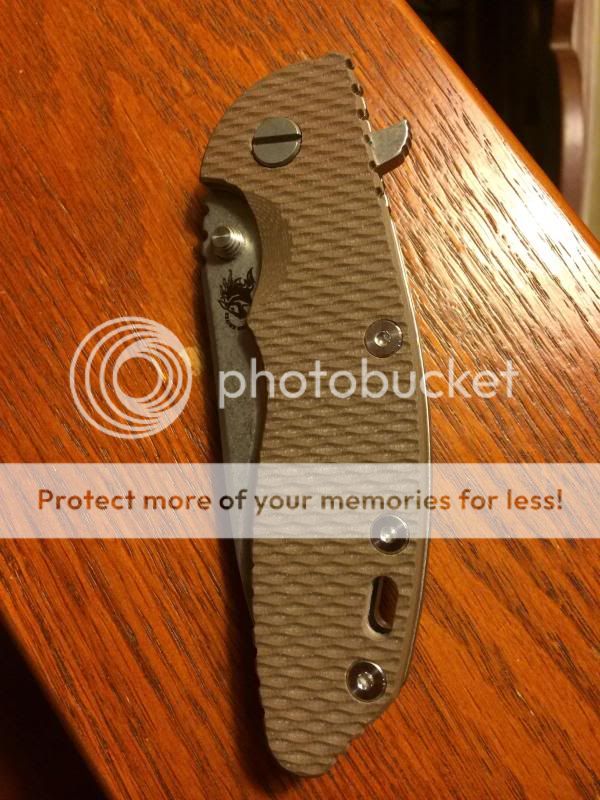 Stonewashed blade with original factory edge (very sharp). Stonewashed frame. Flat Dark Earth G10 with Bronze standoffs. Comes with box, baggie & tactical peanuts. First unequivocal "I'll take it" followed up by a PM or email gets it. CONUS only. NO TRADES!!! $SOLD NET PAYPAL (ie, add 3% or send "Gift") SHIPPED USPS 2-DAY PRIORITY INSURED.