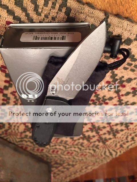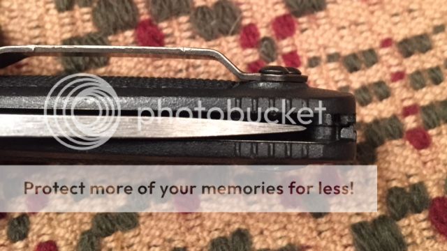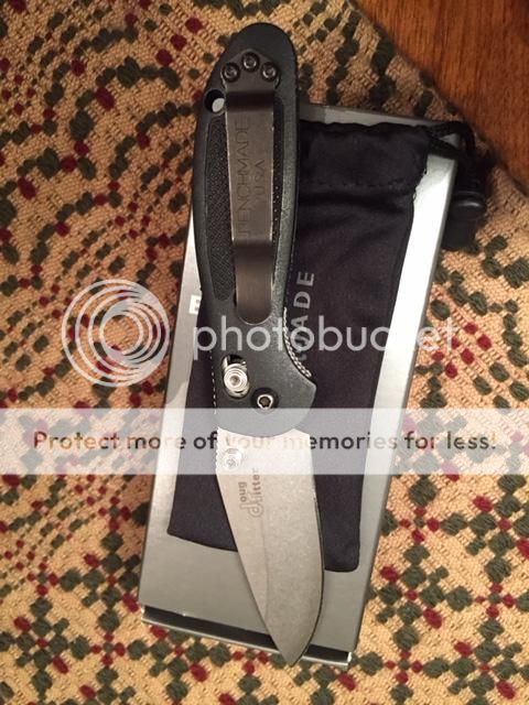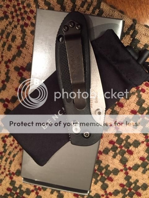 Next is a Benchmade Doug Ritter Mini Griptilian. This has been used and carried, although there are no noticeable marks on the blade. It has also been sharpened, but hasn't been used since so the edge is fresh and is imo a vast improvement over the stock edge (pictures of the edge included). Functions as flawlessly as when new. Blade is the tiniest bit off center, although I only think it looks off sometimes, tried to capture that in the pics. $75