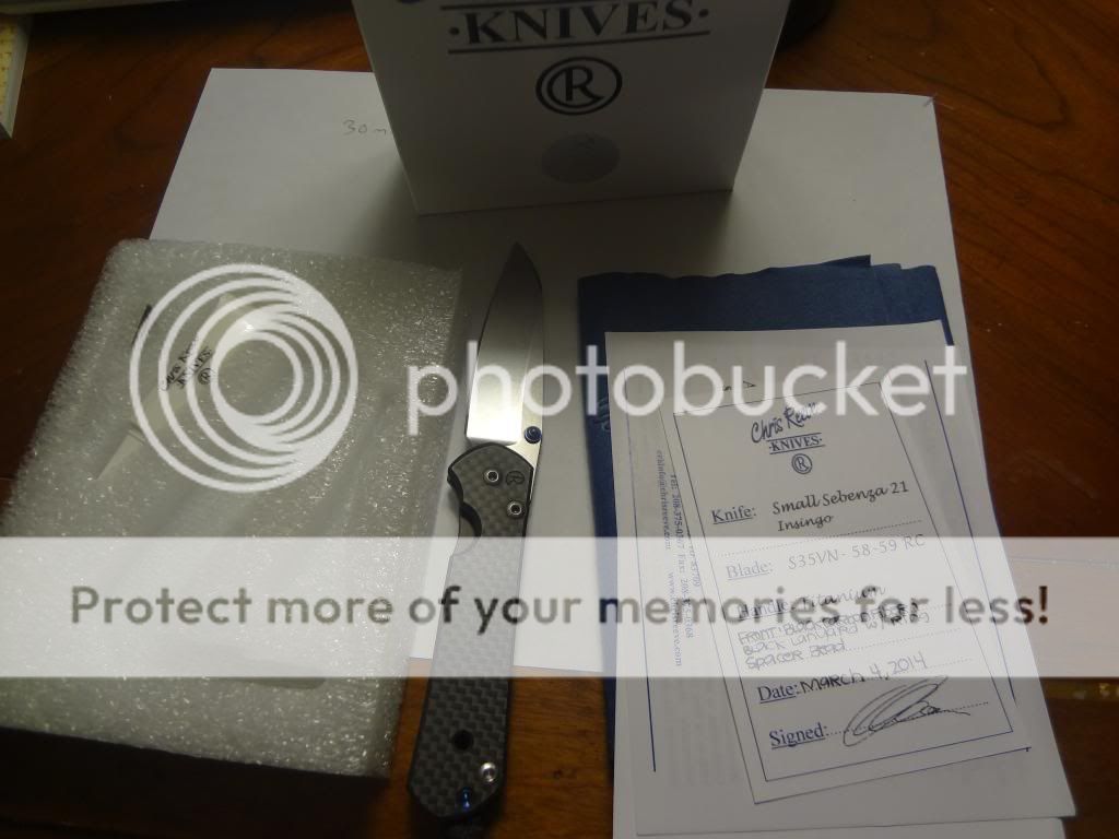 Hi all. For sale today a Knifeart.com exclusive LNIB Chris Reeve Small Insingo with carbon fiber scale. Ive had this knife for a few days and decided I prefer the standard small 21 a little better. The knife has only cut paper and is practically untouched, has only been out of the box and in a sheath. The only scratch I can see is a tiny hairline scratch on the carbon fiber scale, its impossible to photograph and I suspect it actually came with it from the store since I havent carried it much. I am the original owner. The knife is very light and has a nice balance right where your index finger would rest. Blade is perfectly centered and lock-up is early around 50%. Its smooth but needs to break in. Lock-up feels solid with no up and down play and a little flex side to side. I decided to keep the lanyard and bead it came with originally and placed a standard Chris Reeve lanyard and pin instead. Date of birth is March 4, 2014. It will come with everything it came with when new except for the mentioned lanyard. Im asking $370 Paypal gift or add 4%. I will include shipping USPS Priority mail. International shipping or insurance will be at cost of the buyer. Thanks for looking!