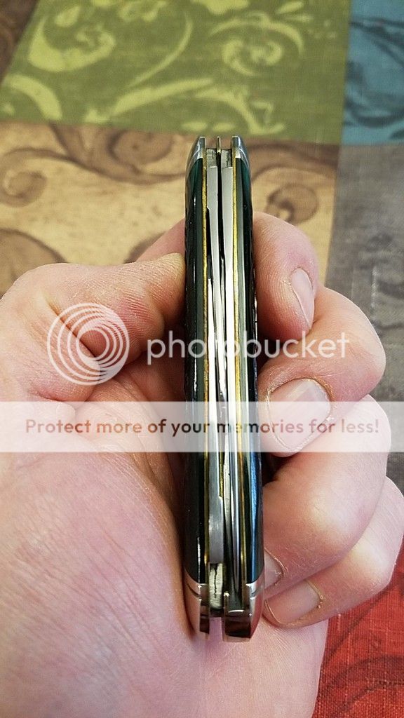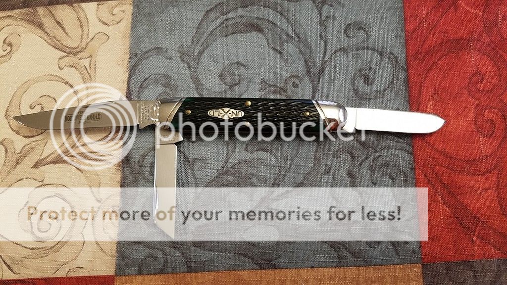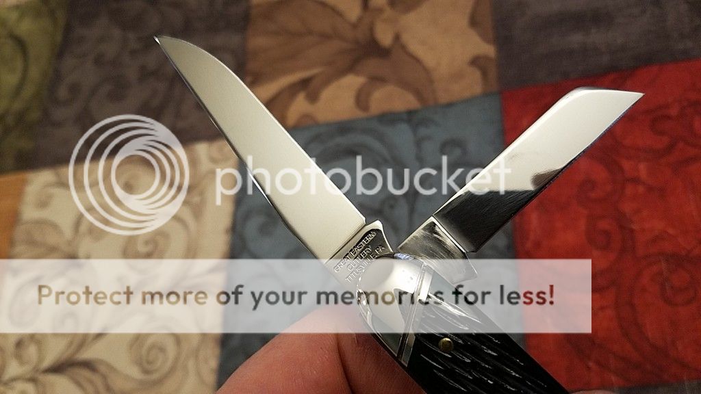 I have purchased a bunch lately so will be selling a few to make room. This is a very nice GEC #53 Cigar Stockman in Green Jig Bone. I purchased this on the Exchange maybe a year ago, it was listed as LNIT and I have never carried it, just opened and wiped it periodically. There is some minor blade rub, otherwise the knife is spectacular. PLEASE ask any questions, the price is $110 shipped USPS Priority, CONUS only, Paypal G&S only. First claim gets it. Thanks for looking, more knives to come.