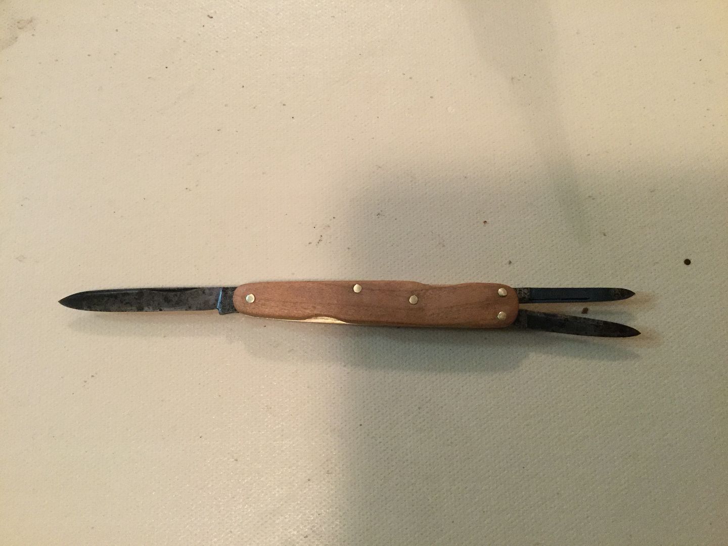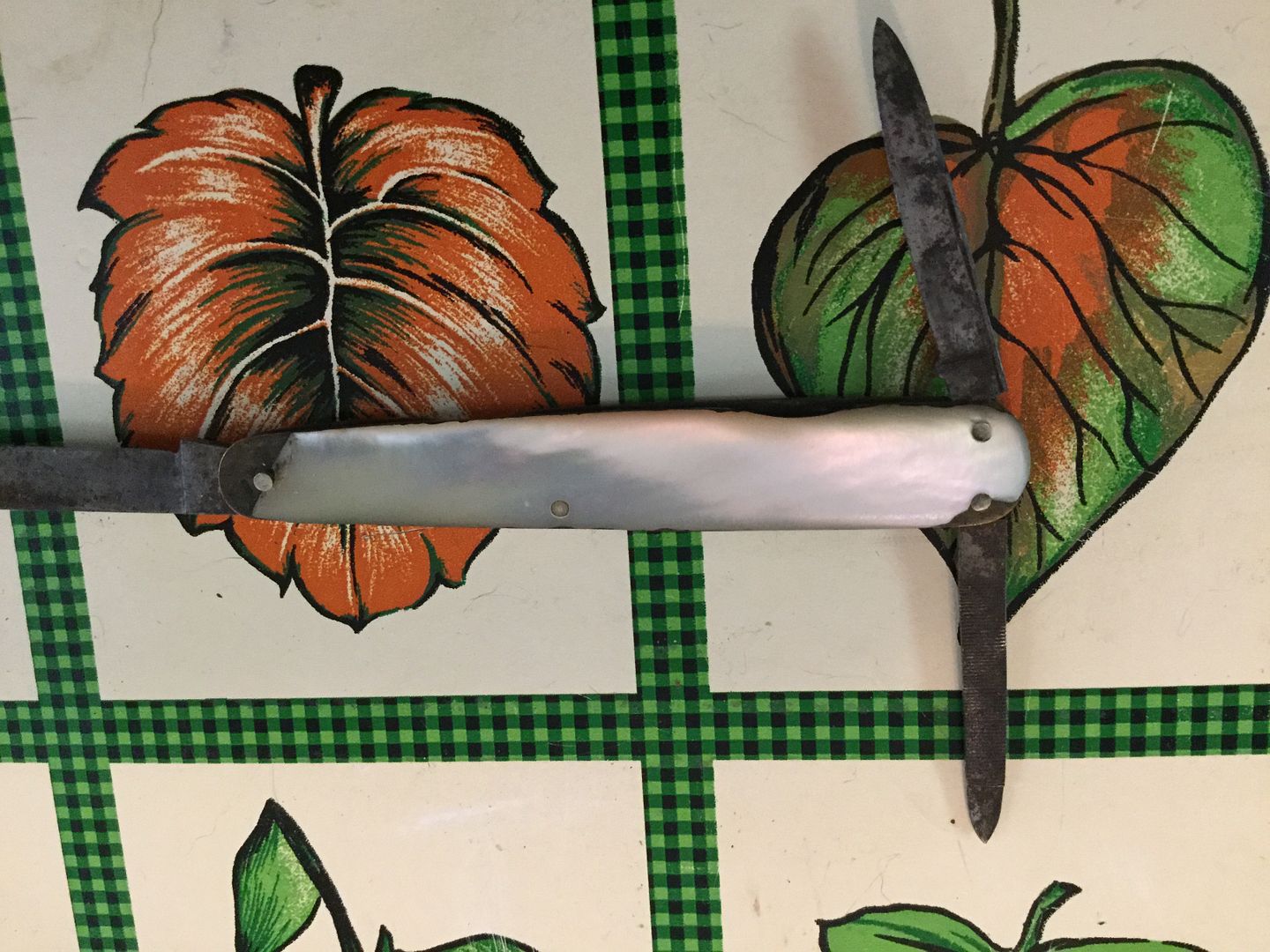 I picked up this rusted and beat up Sheffield lobster knife for $2 for the sole purpose of trying to restore it. Here is what it looked like when I started, the pearl covers were cracked and it was a mass of rust.