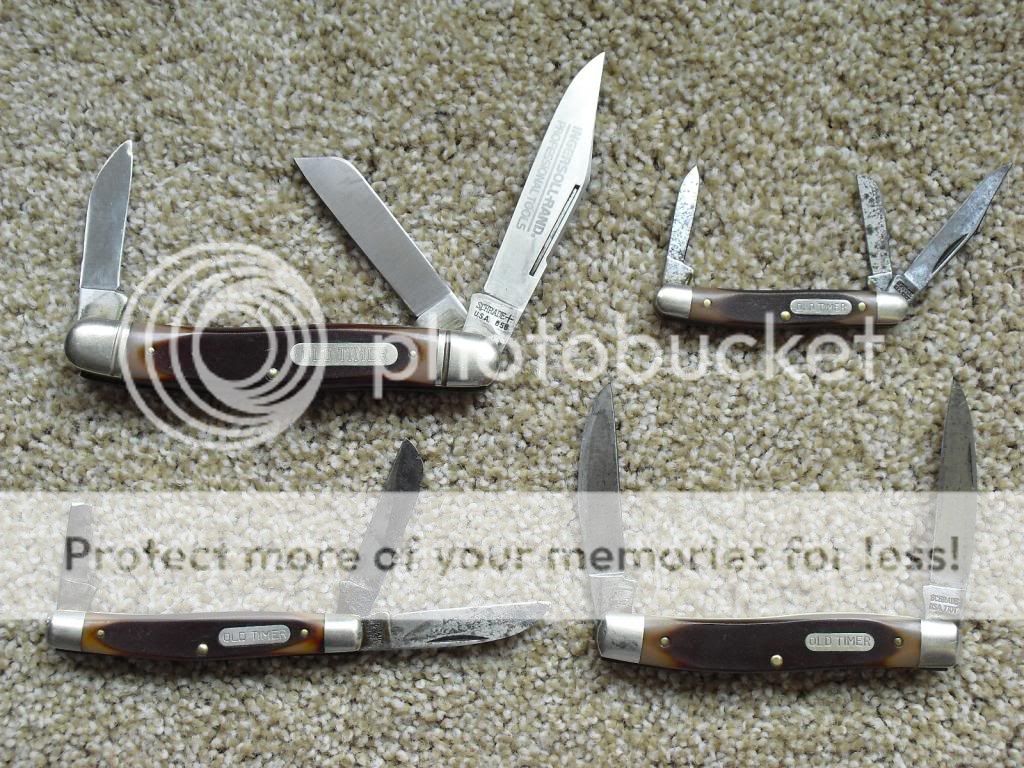 Lower left in the pic here is an old 34OT that had the same issues. Broke main & sheepfoot & spay. Main became a sheepfoot/Wharncliffe style, sheepfoot made shorter with a new tip, and spay turned into a screwdriver that fits most of the screws on my Winchester Model 94. They all look nasty, but they're all sharp, have good snap, and I don't mind working them much harder than I will my other traditionals.