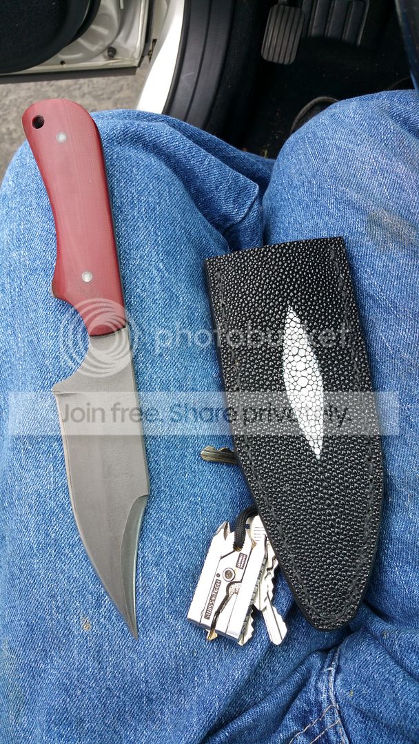 That's why I suggested the Hissatsu. Perfect application of modern materials, ideal steel in corrosion resistance, toughness and ease of sharpening (no need of armor piercing or steel bashing here), reliable and discreet synthetic sheath with multiple carrying options...and what is also very important: disposable, cheap, readily available and with a trainer version to practice all day long.