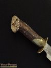 I have a big bowie coming in about 8 weeks, and was wanting to Aldo Raine it out with a crown stag handle, brass hand guard, and another piece of brass below the guard. I'll post a pic. If anyone can do that kinda work, and can give me a round about price quote I would appreciate it.