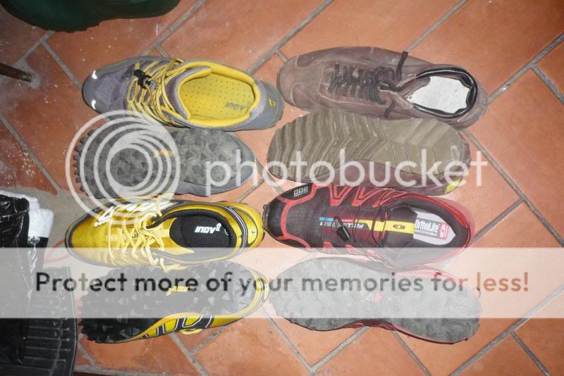 Top left are Inov8 Mudclaw 333's, top right are Walsh Fellrunning ankle boots ( old pair I have had for years and are discontinued now ), bottom left are a new pair of Inov8 Mudclaw 300's and bottom right are salomon fellcross 1 LAB's.