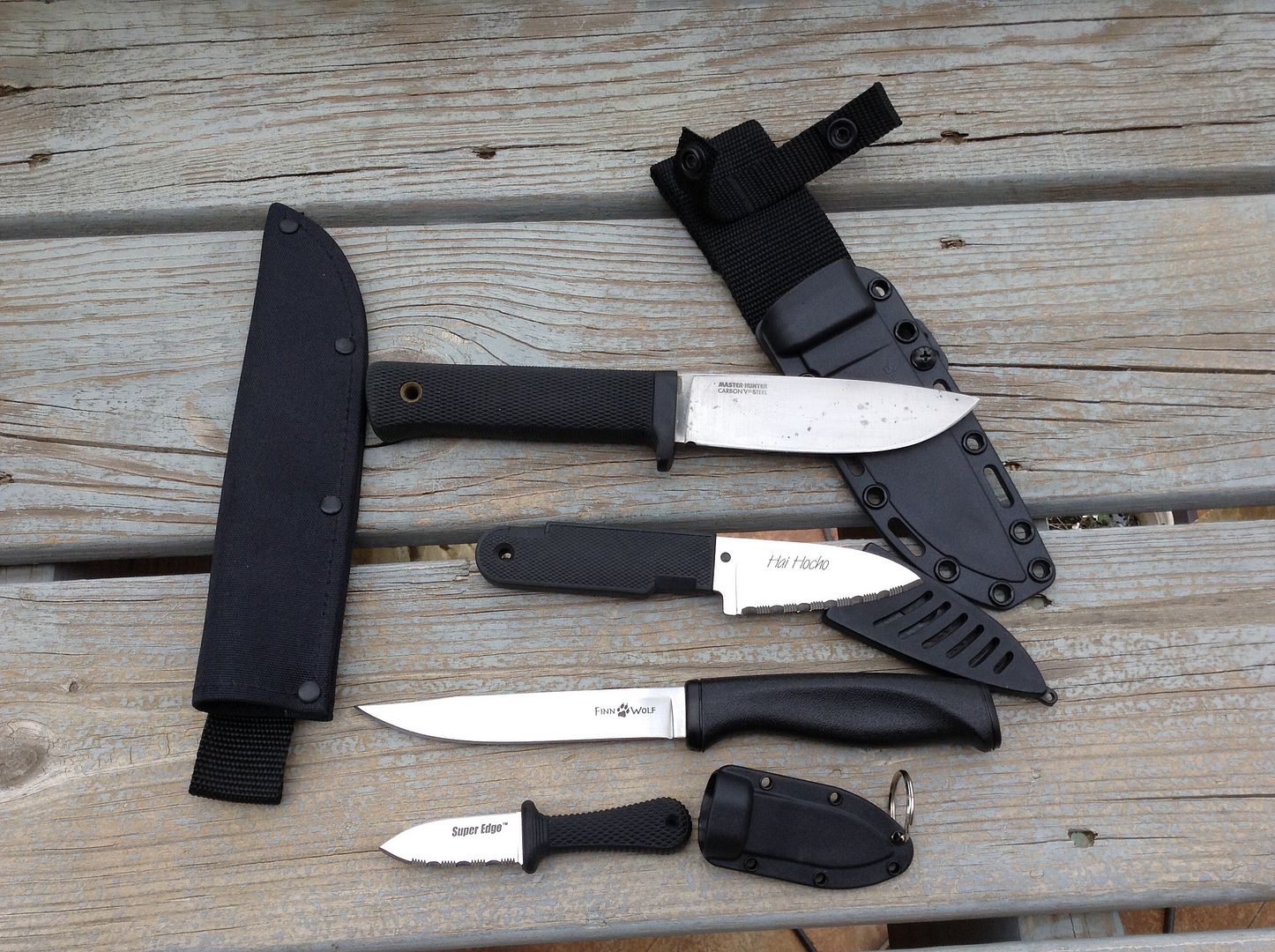 Here I have a lot of Cold Steel knives for sale. Most of these are discontinued models. Price includes shipping in the USA only. Payment via PayPal ("Friends" or add 4%) or a money order if need be. The lot includes a lightly used, made in the USA, Master Hunter in Carbon V steel. It shows some patina spots but is in great shape with a perfect edge. Also included is an unused Hai Hocho, the original Finn Wolf and a Super Edge. Price is $120 shipped for the lot.