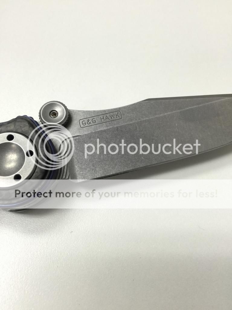 5) Grant and Gavin Hawk - MUDD Midtech - Amazing knife! It blows my mind whenever I use it. Very unique locking and release system that tempts me to take it apart (don't worry, I never have!). It very smooth and locks up solid. Centered and a joy to play around with. This one is in nearly new shape, and I am the second owner. The liners were anodized purple by G&G Hawk, a paid upgrade from the factory.