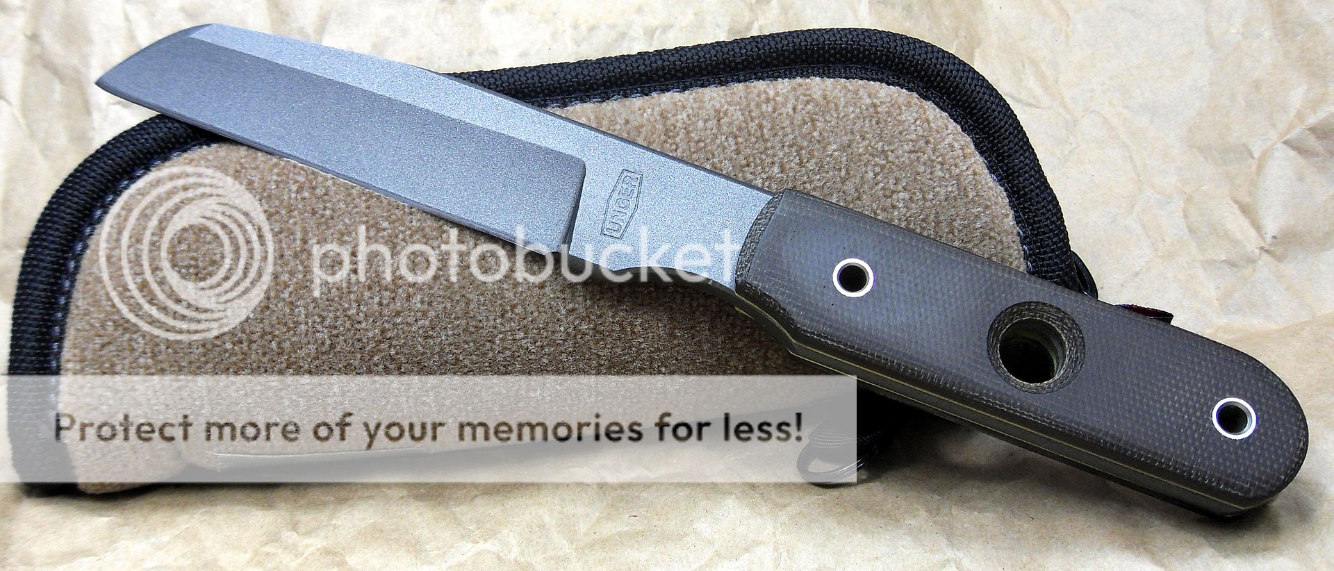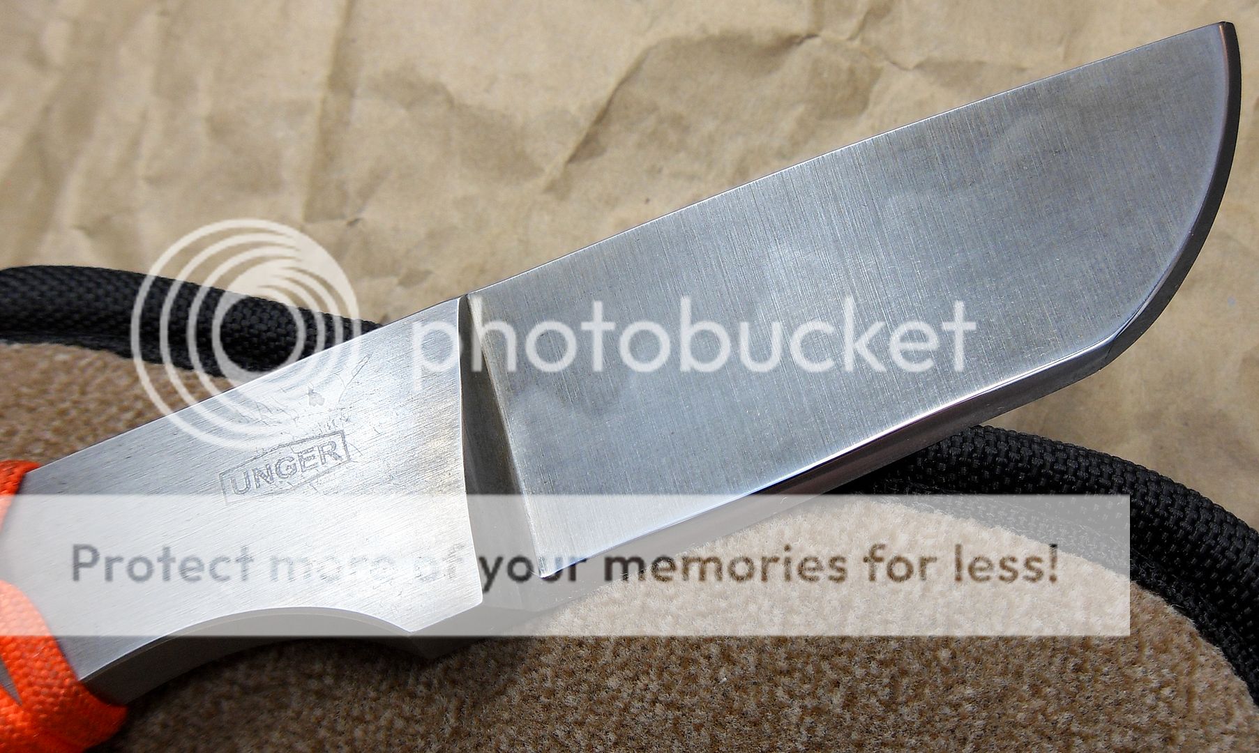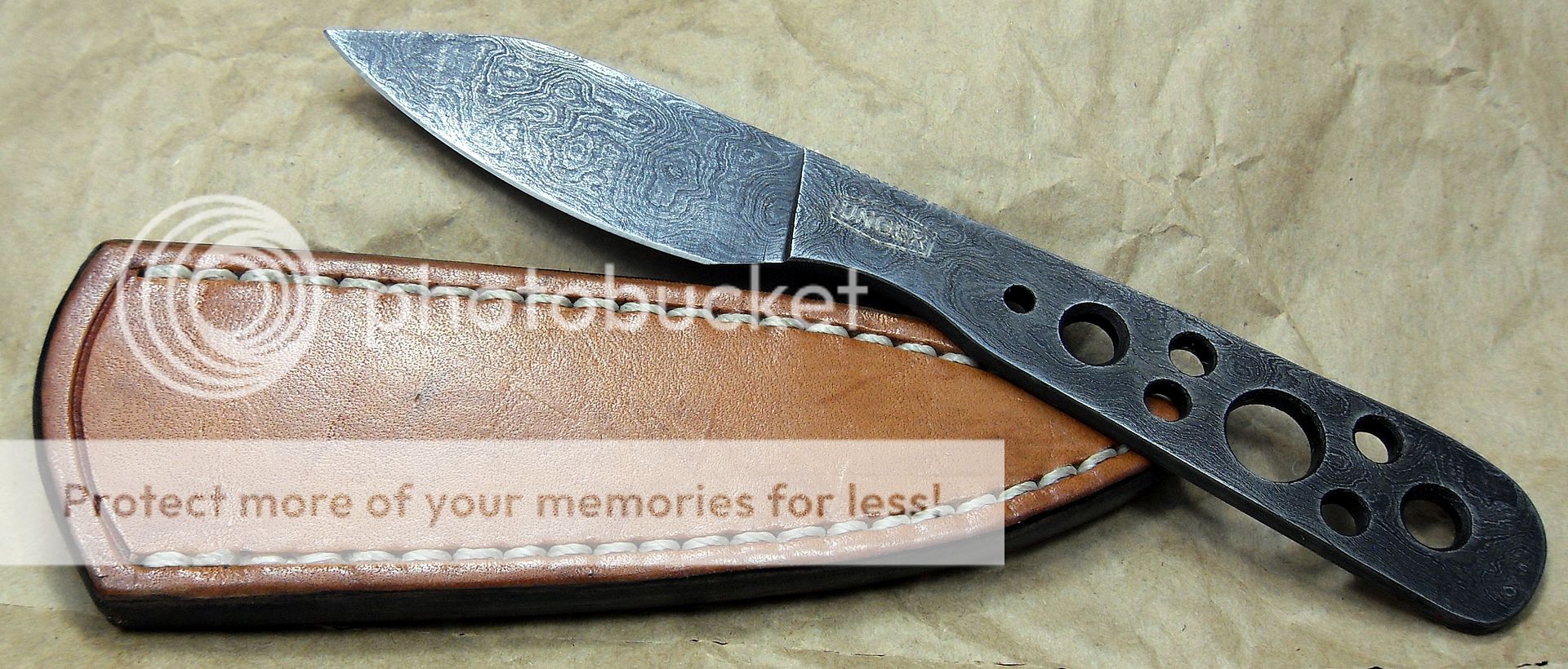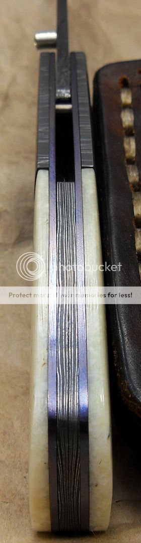 This is a unique little Damascus piece by Mr. Unger. Great grind lines and fine Damascus.