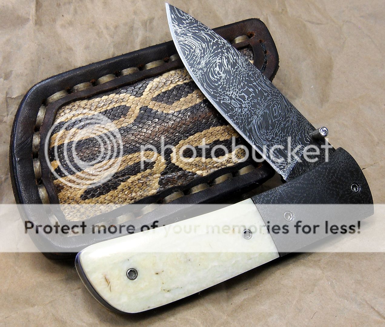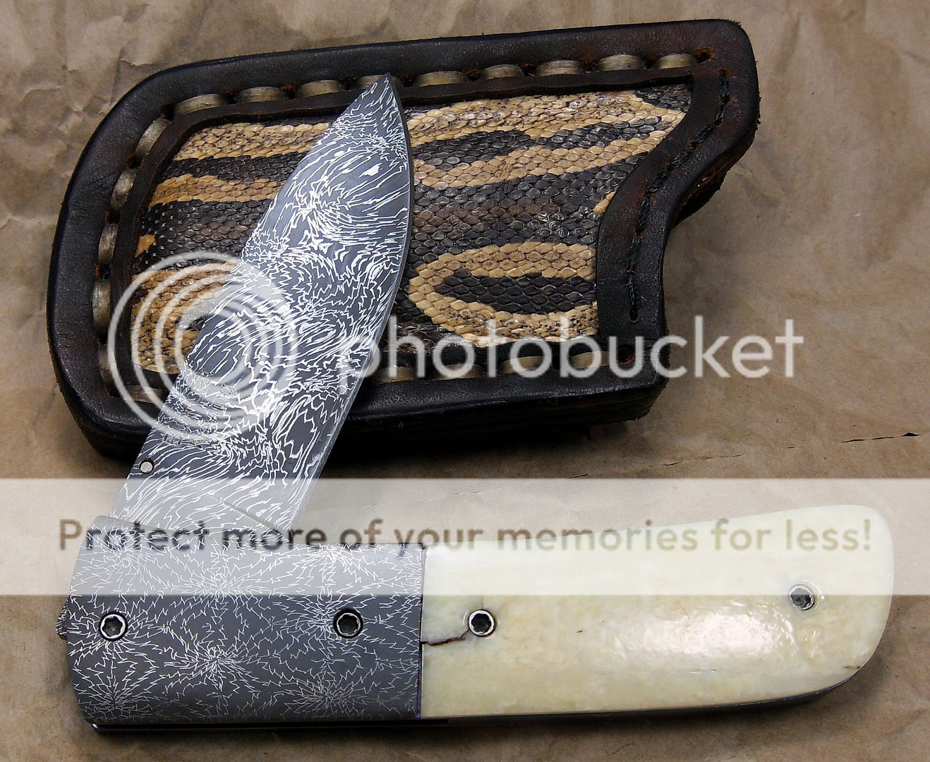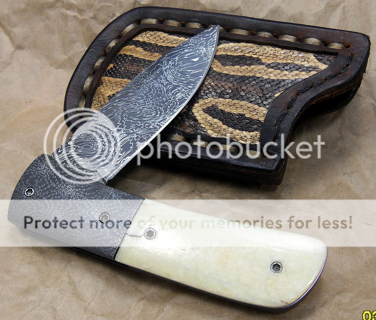 This is a unique little Damascus piece by Mr. Unger. Great grind lines and fine Damascus.