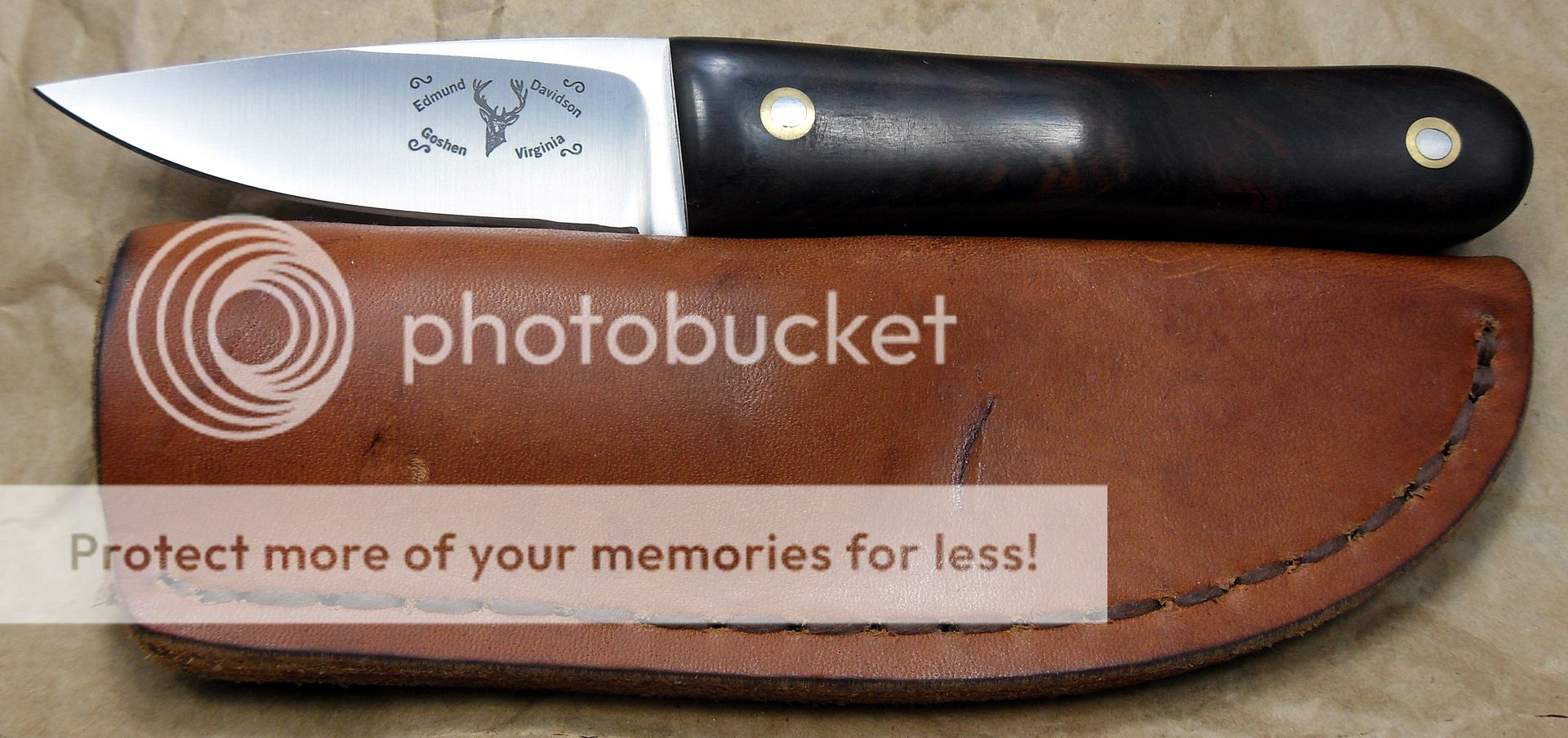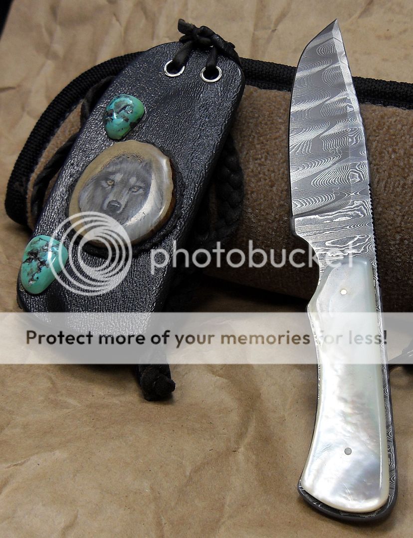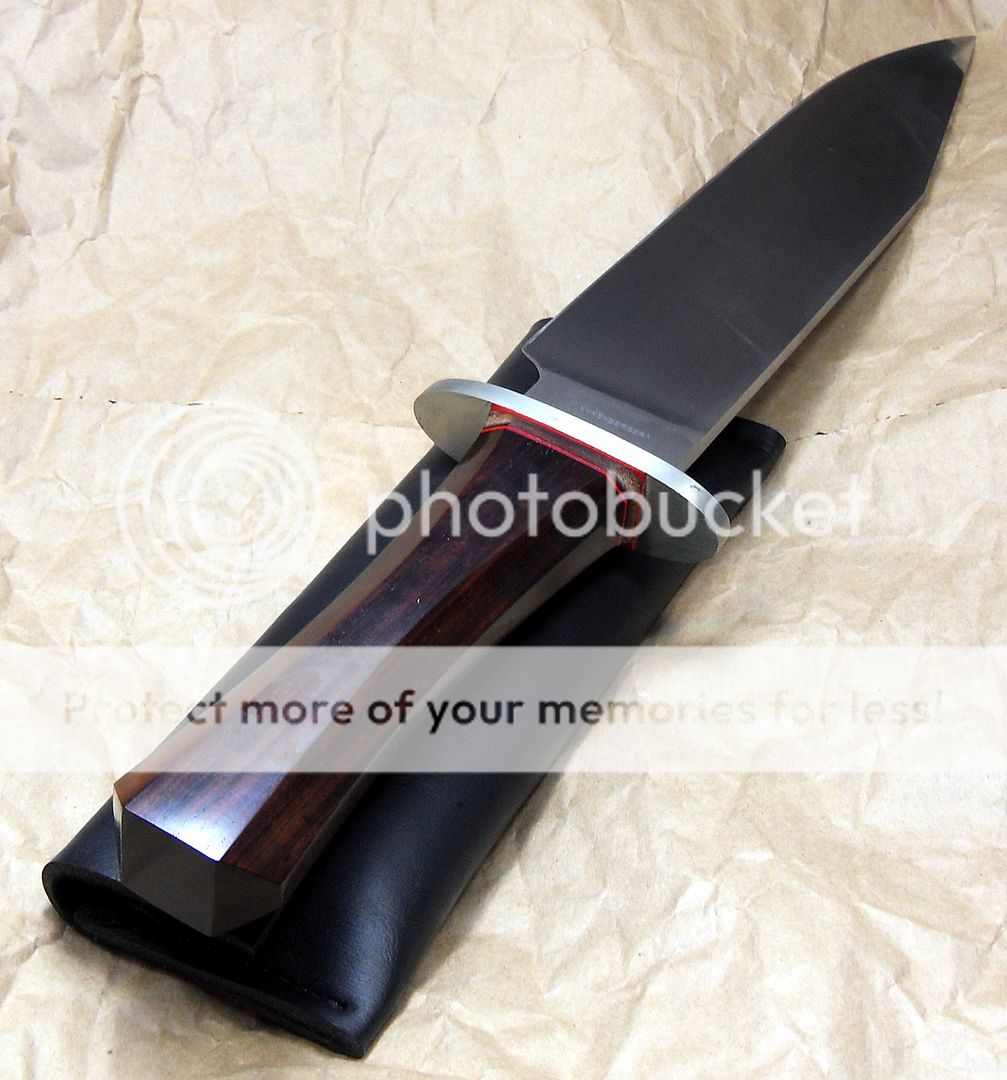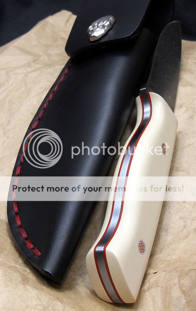 The maker of this piece is a relatively new maker, this knife is dated 2014 but he’s been making knives for around three years now and I have to say, I’m VERY impressed with his work. He’s out of Missouri. His fit and finish and attention to detail is quite impressive. He also does his own leatherwork, which is equally as impressive.