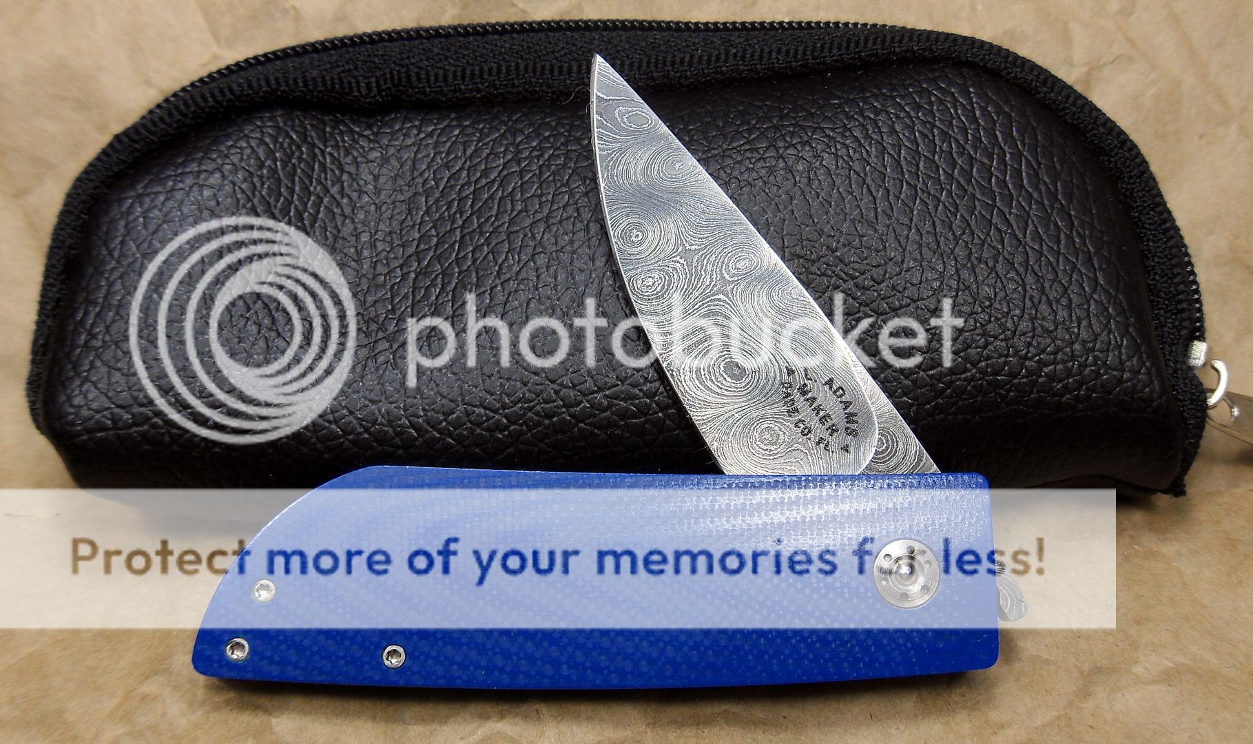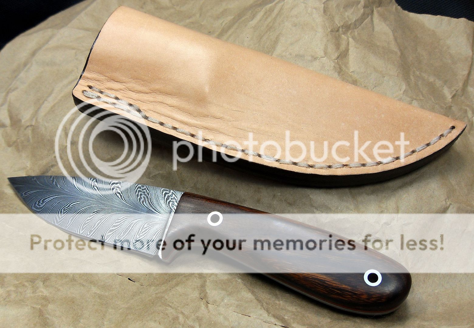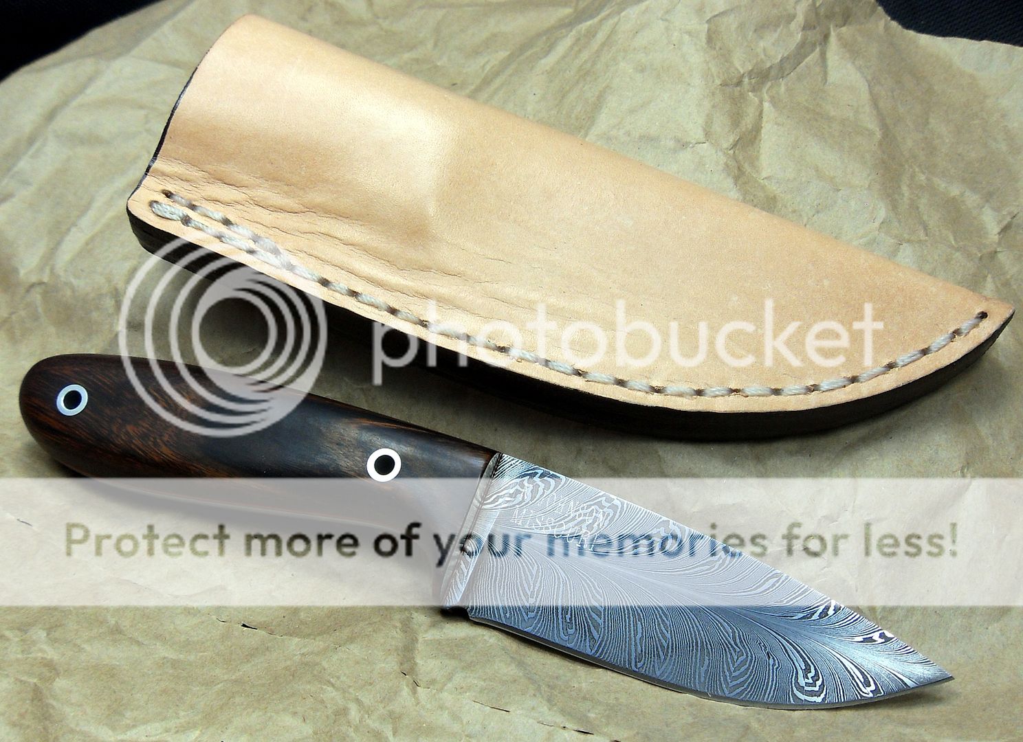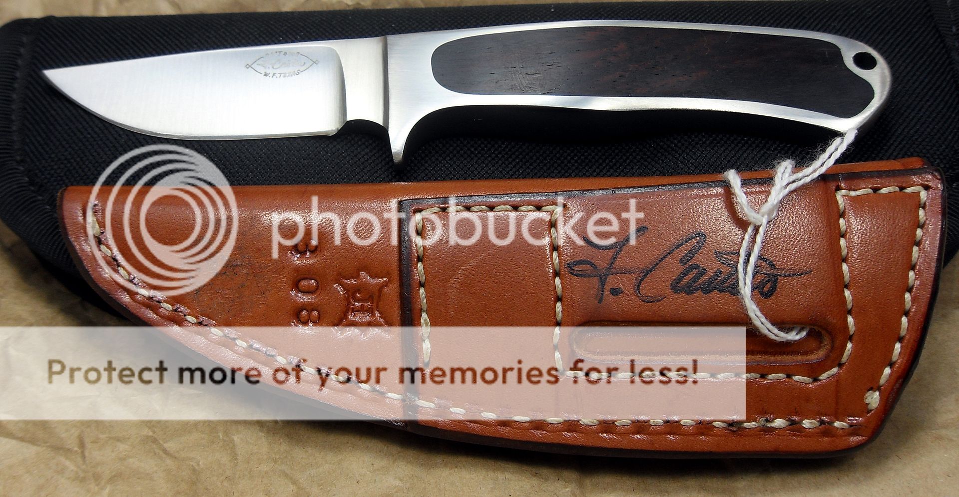 The maker of this piece is a relatively new maker, this knife is dated 2014 but he’s been making knives for around three years now and I have to say, I’m VERY impressed with his work. He’s out of Missouri. His fit and finish and attention to detail is quite impressive. He also does his own leatherwork, which is equally as impressive.