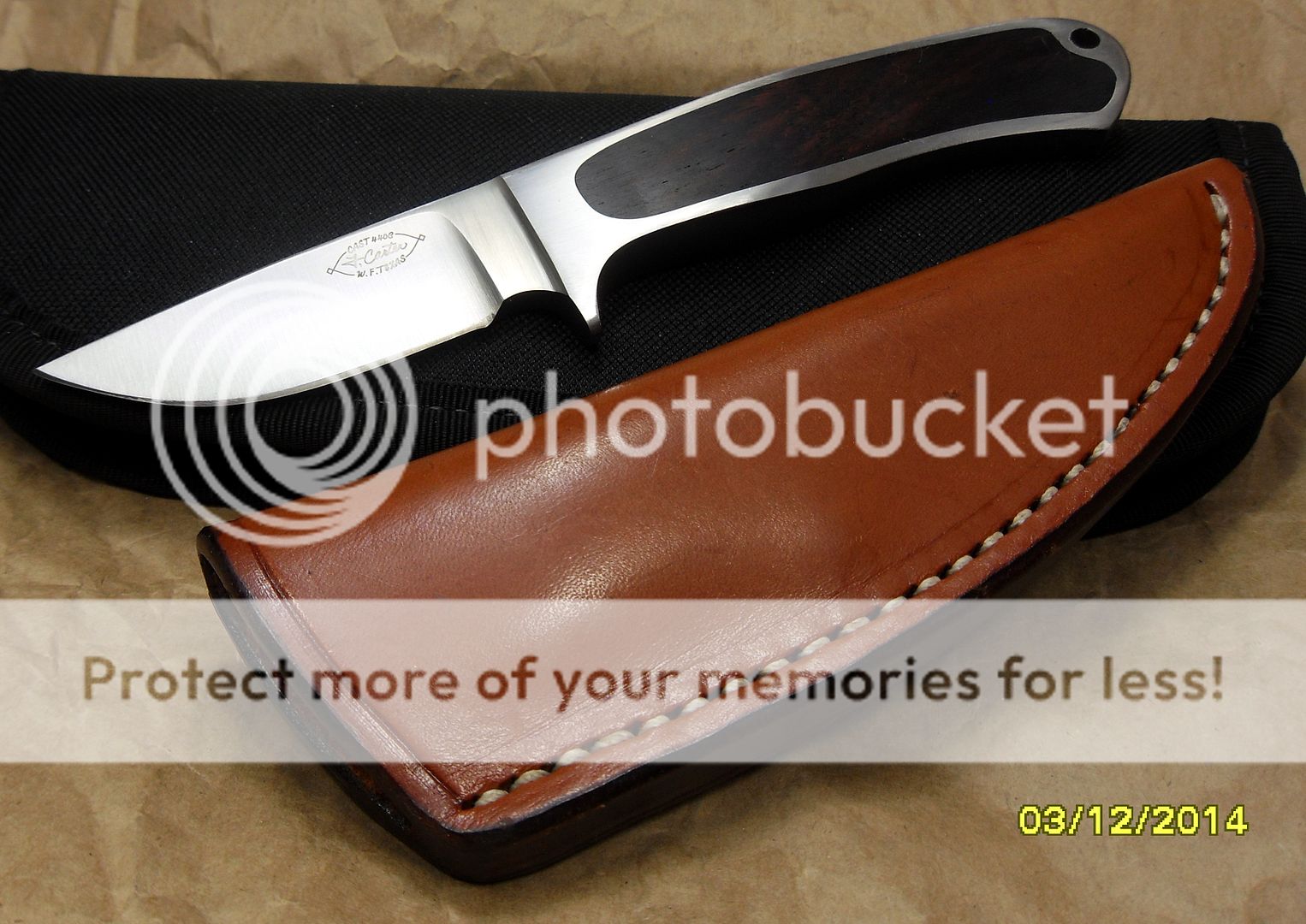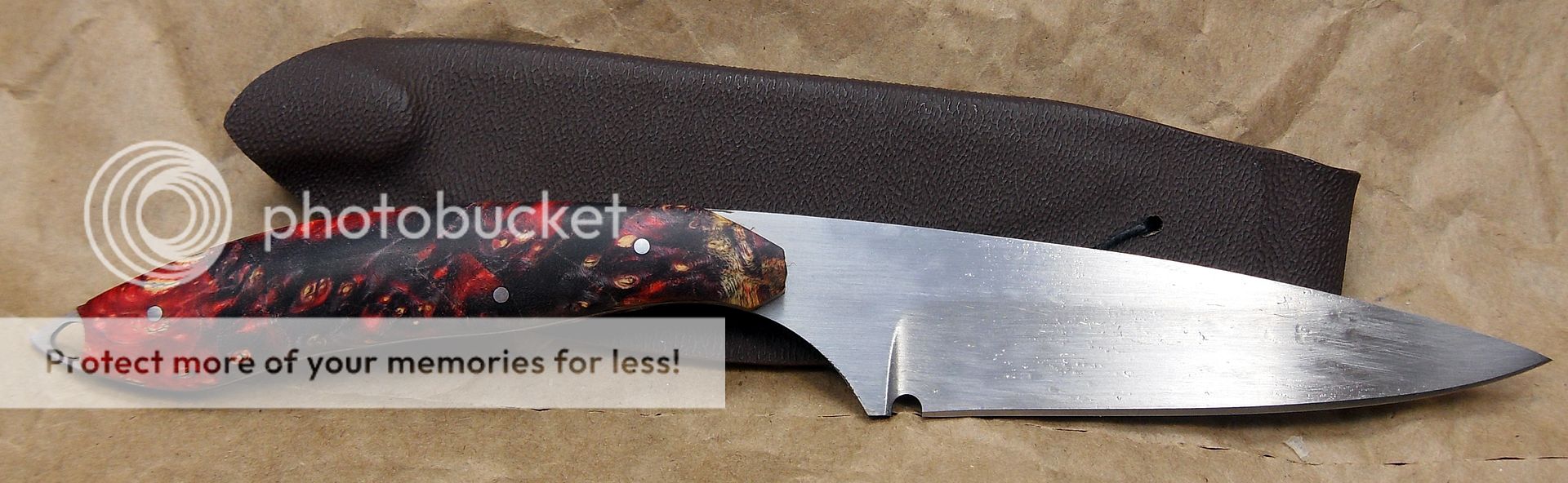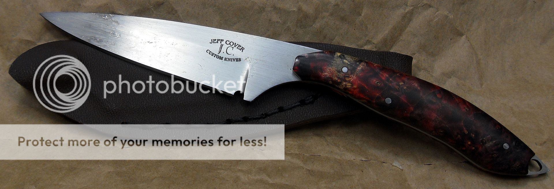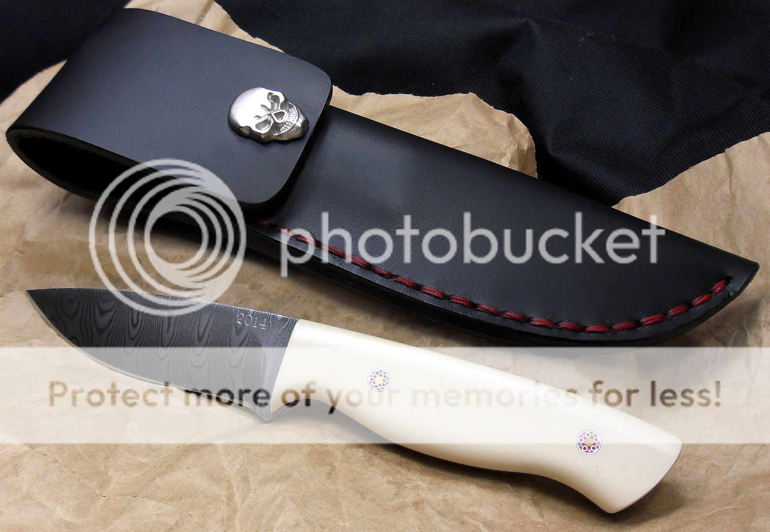 The maker of this piece is a relatively new maker, this knife is dated 2014 but he’s been making knives for around three years now and I have to say, I’m VERY impressed with his work. He’s out of Missouri. His fit and finish and attention to detail is quite impressive. He also does his own leatherwork, which is equally as impressive.