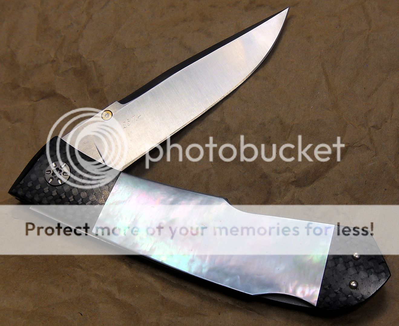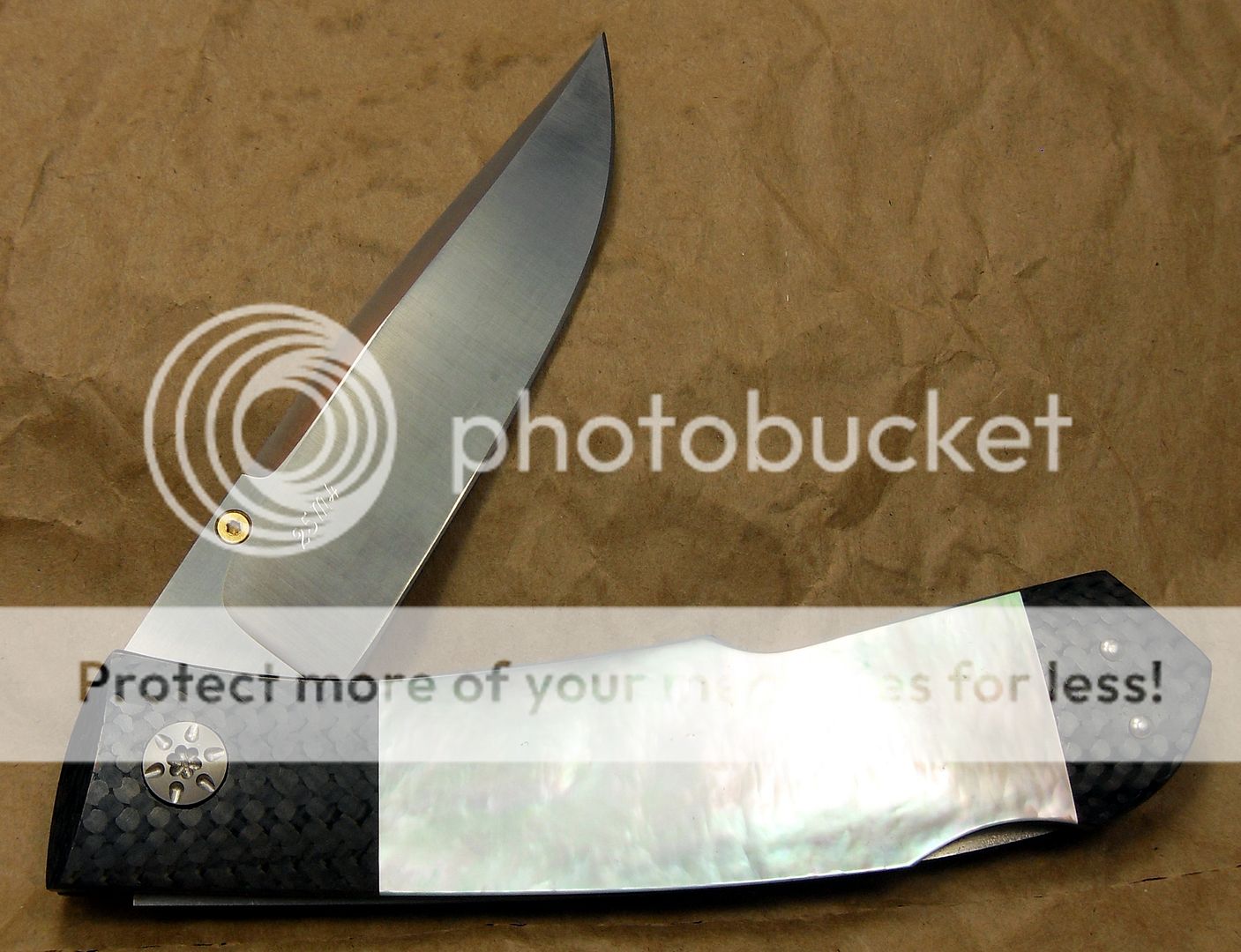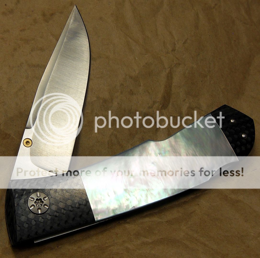 This little beauty features Presentation Grade Mother of Pearl and a tapered tang. As per usual, Koji’s craftsmanship is exemplified in this little knife. The fit and finish is superb.