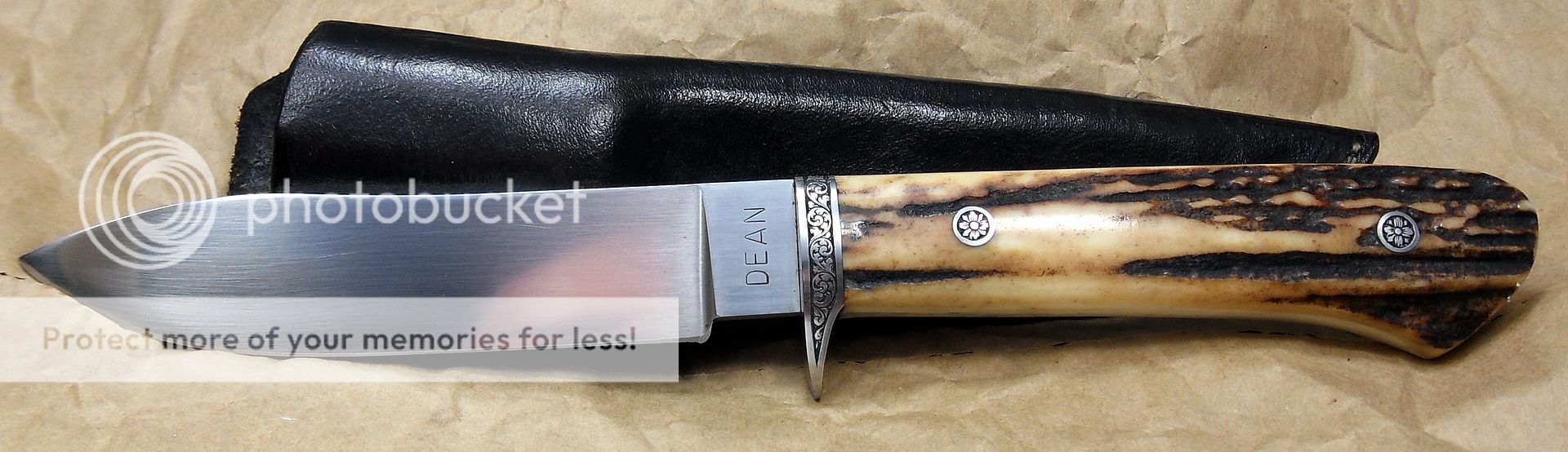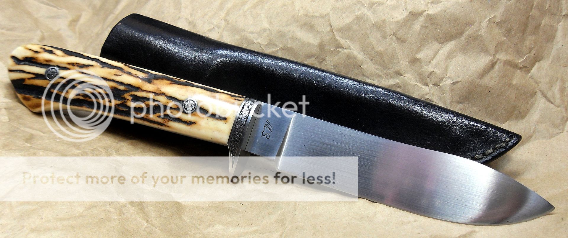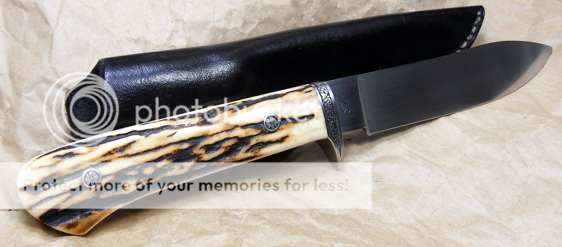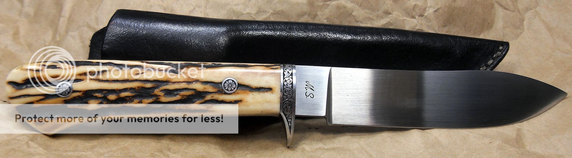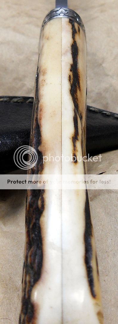 This knife is amazing. The fit and finish are off the charts, the engraving on the bolsters and the pins is excellent, the way the knife “snaps” into it’s sheath is phenomenal, it’s the type of stuff that separates the Masters from those other guys…How he got those two pieces of stag to match up like that I’ll never know…