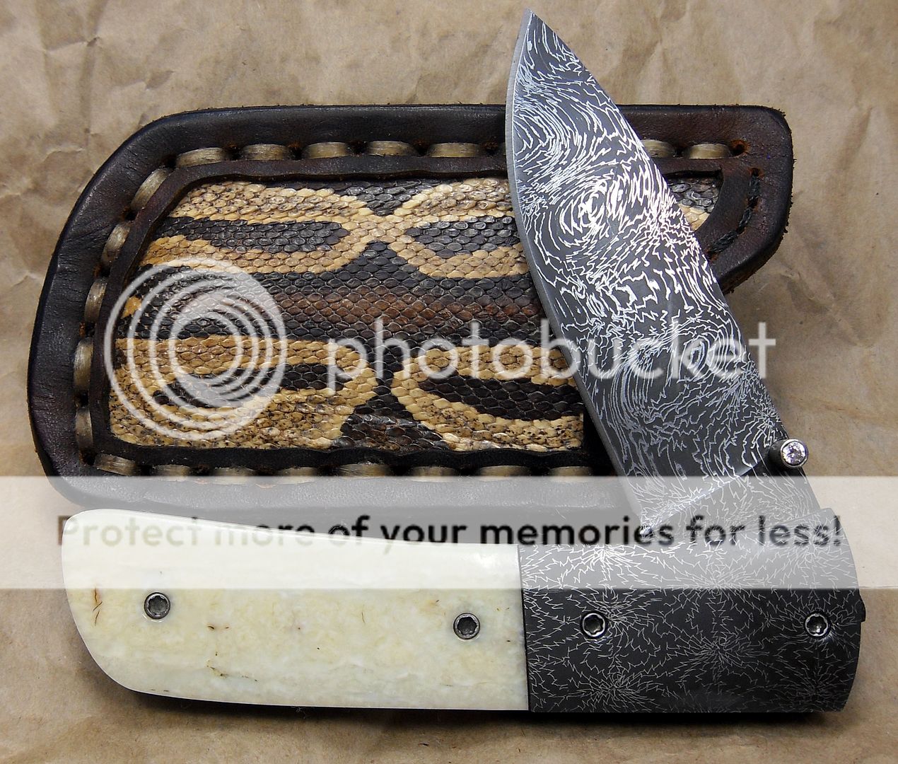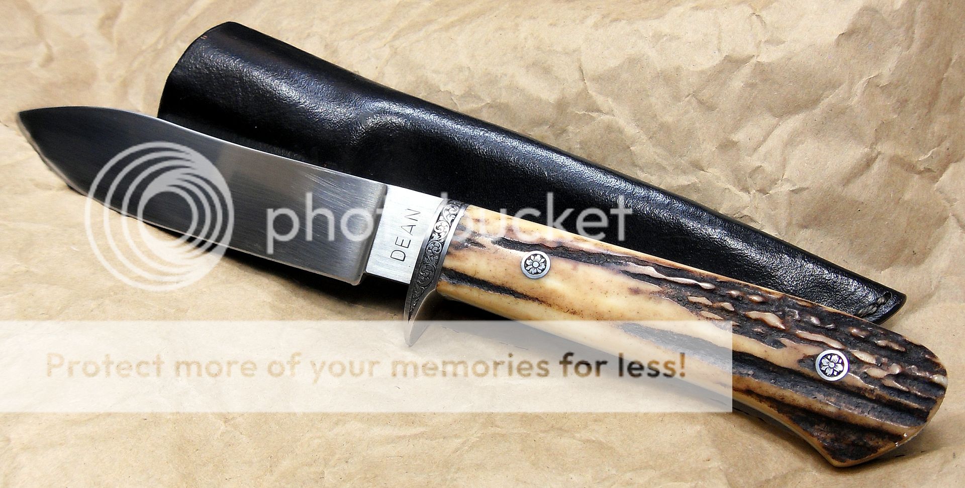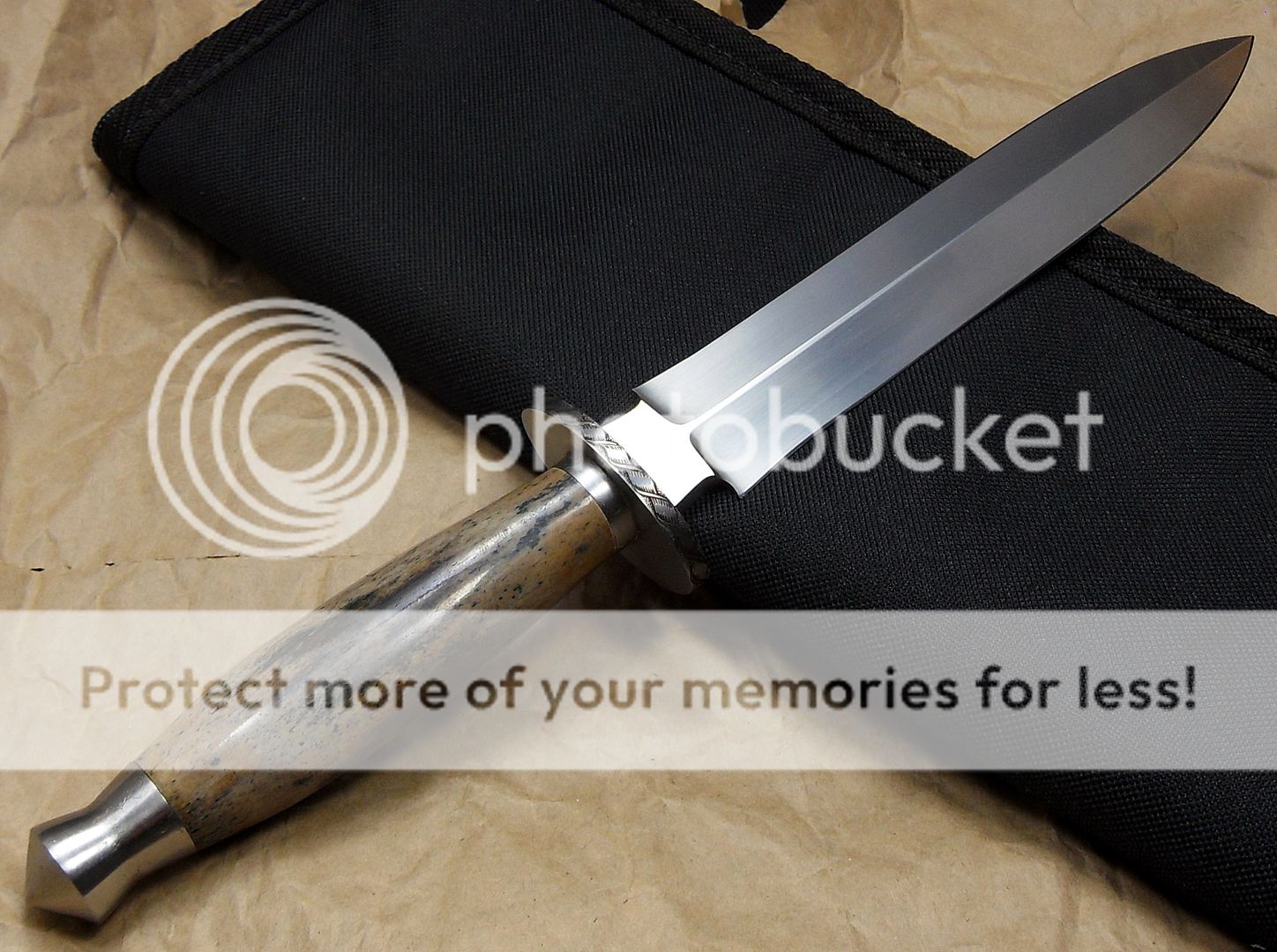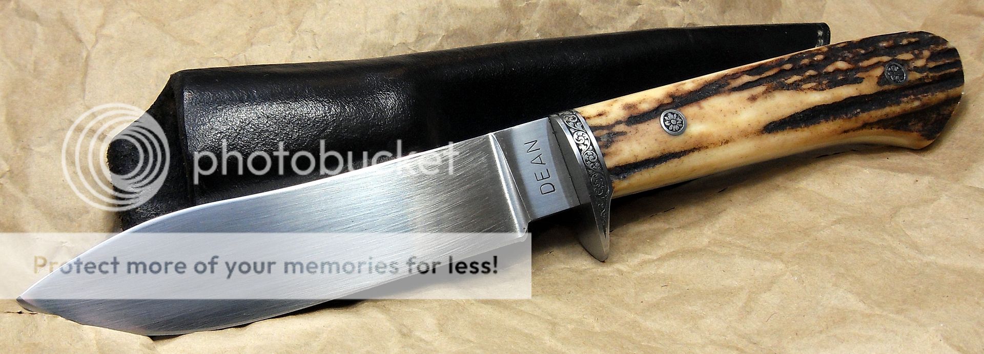 This knife is amazing. The fit and finish are off the charts, the engraving on the bolsters and the pins is excellent, the way the knife “snaps” into it’s sheath is phenomenal, it’s the type of stuff that separates the Masters from those other guys…How he got those two pieces of stag to match up like that I’ll never know…