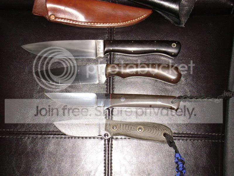 Buxton 1080 bushcraft, Buxton JS EDC, Baker S30V Loveless hunter, Busse GW tanker/black linen