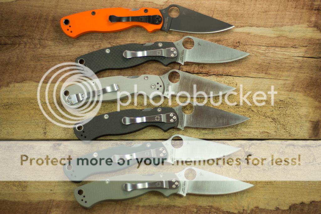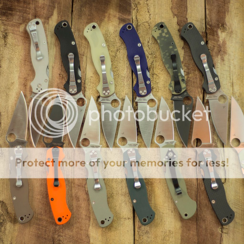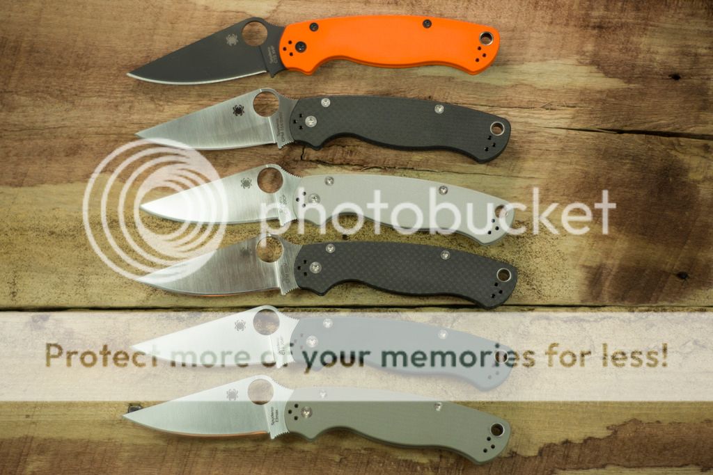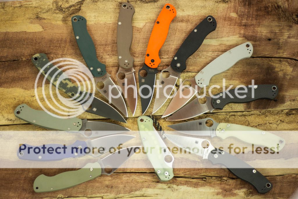 Lots of Paramilitary - all the sprints and exclusives but one are technically available (blue M390 not shown and not available) and the Paramilitary1 is included as the first sprint and the only knife in this family produced in D2.