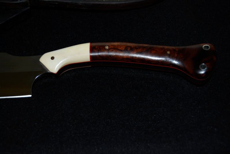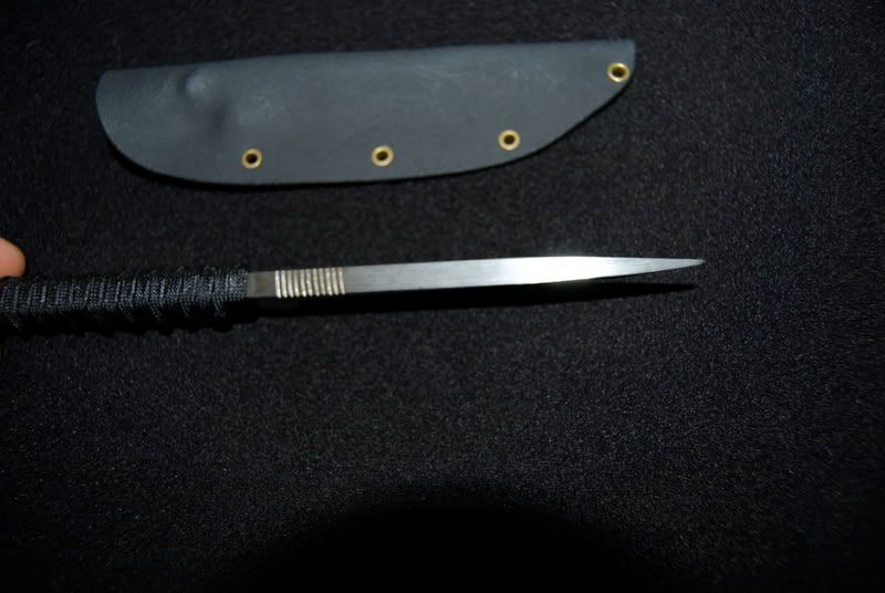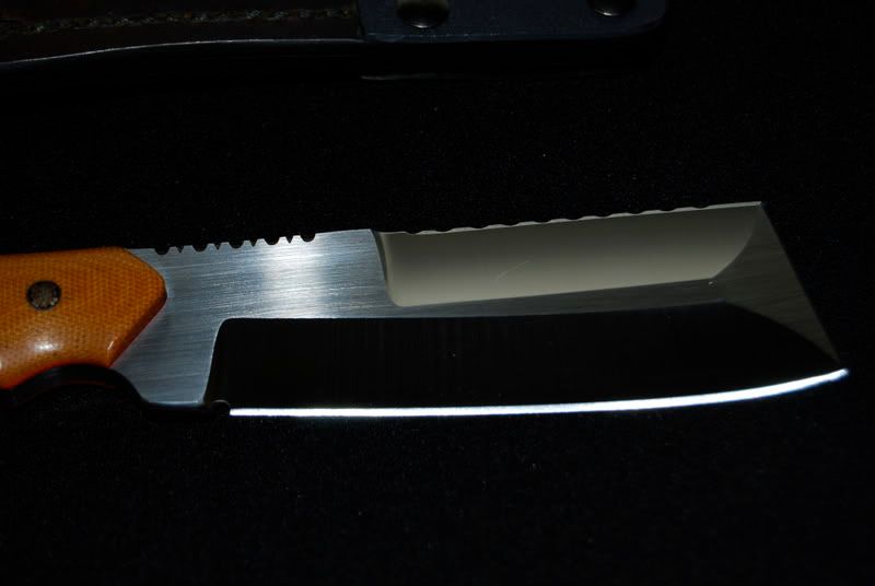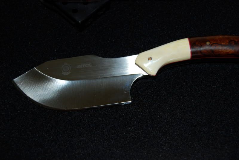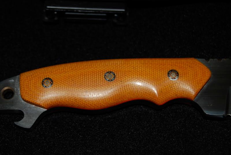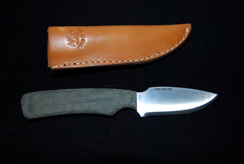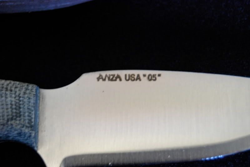 The next is from Anza knives Charlie made this one from spring steel and it has the ultimate feel in the hand. Very sharp and easy the sharpen. This knife is Mint. The handle is made from Micata. SPF
