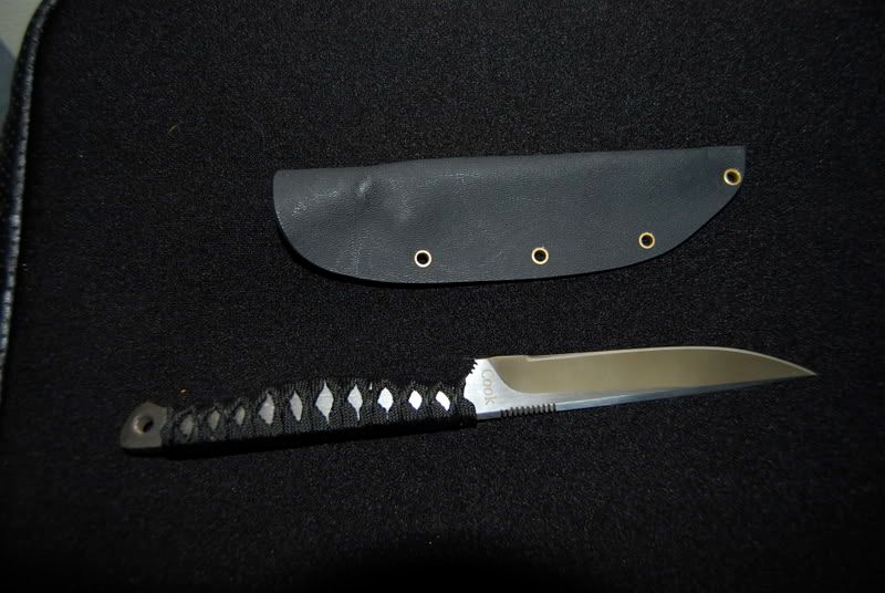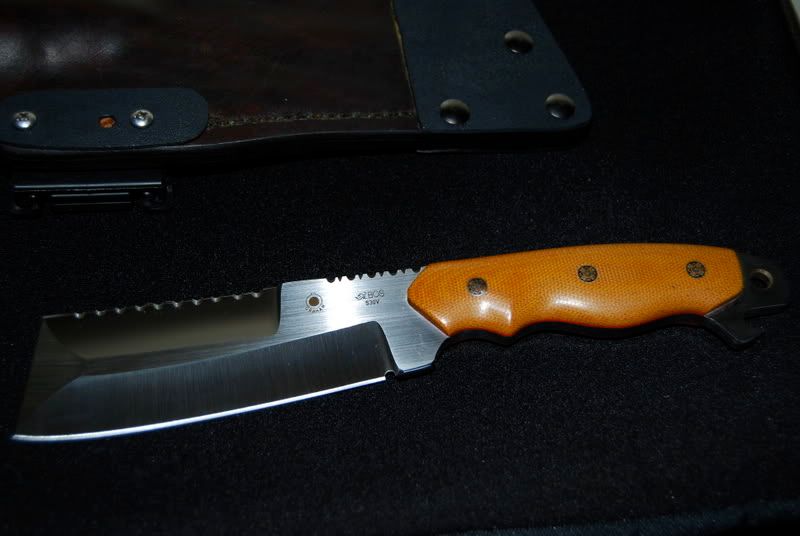 Next is A new never used SS5 Graham. S30V Paul Boss Treated and This knife is hot. The Mosaic Pins are Beautiful. This knife is like a golve in the hand. The sheath is Leather and Kydex w/ tec lock.SPF