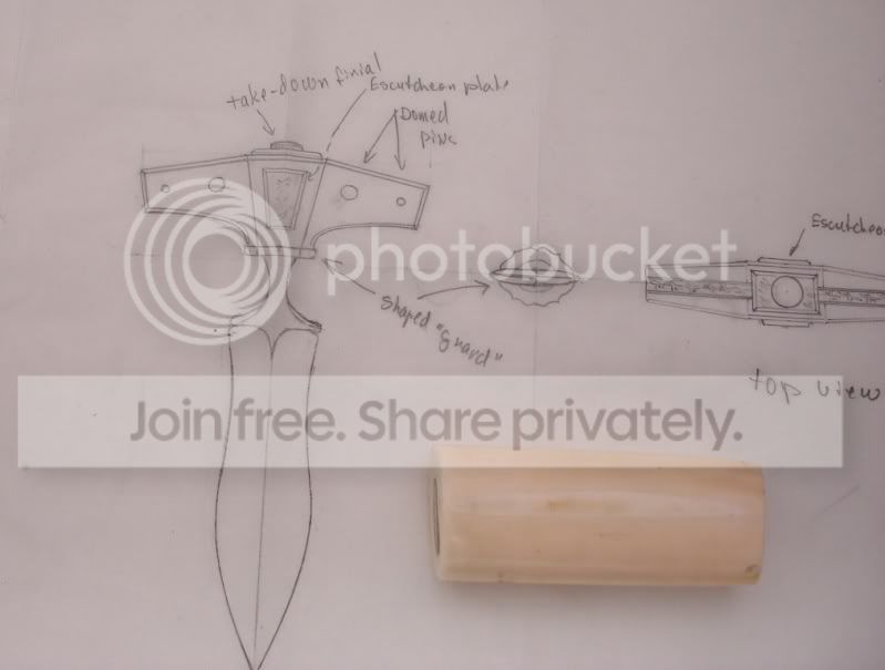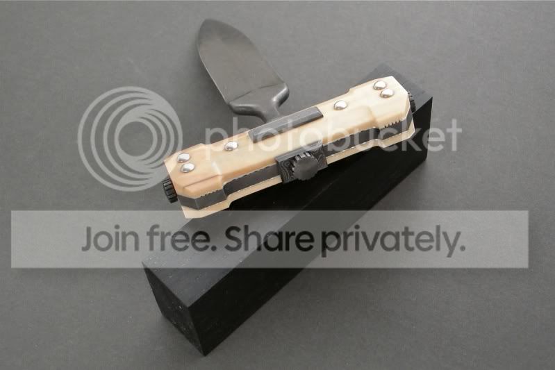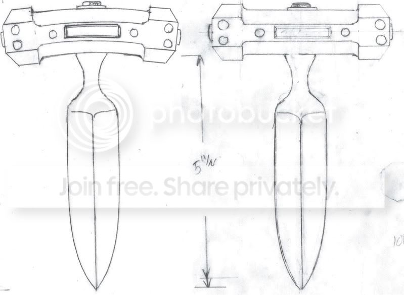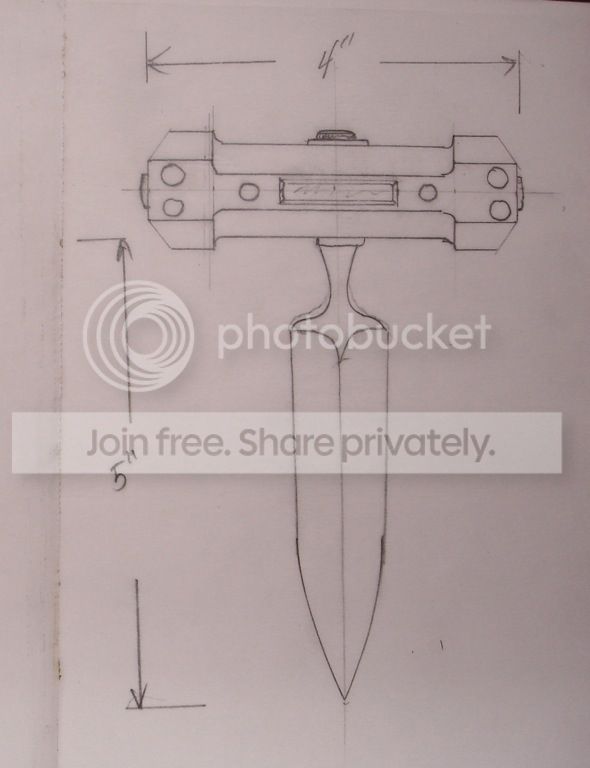 OK, I thought, a Push Dagger with a sort of faceted handle, with maybe some domed pins. You know, something to remind you of a Dogbone.
