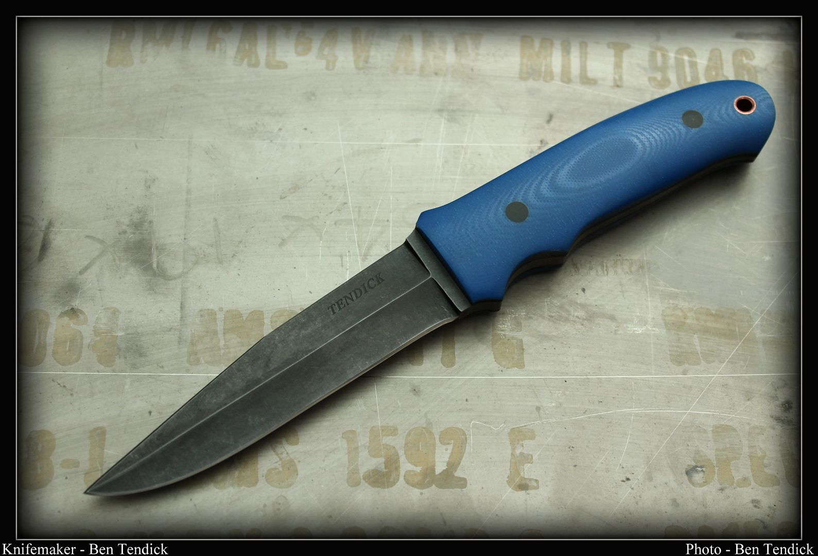 Here is one I made for my Dad about a week ago to add to his "blue collection" of my knives. This is my first ever attempt at a hollow grind or a Loveless. I have to thank Zac Buchanan for sending me the drawings and measurements.