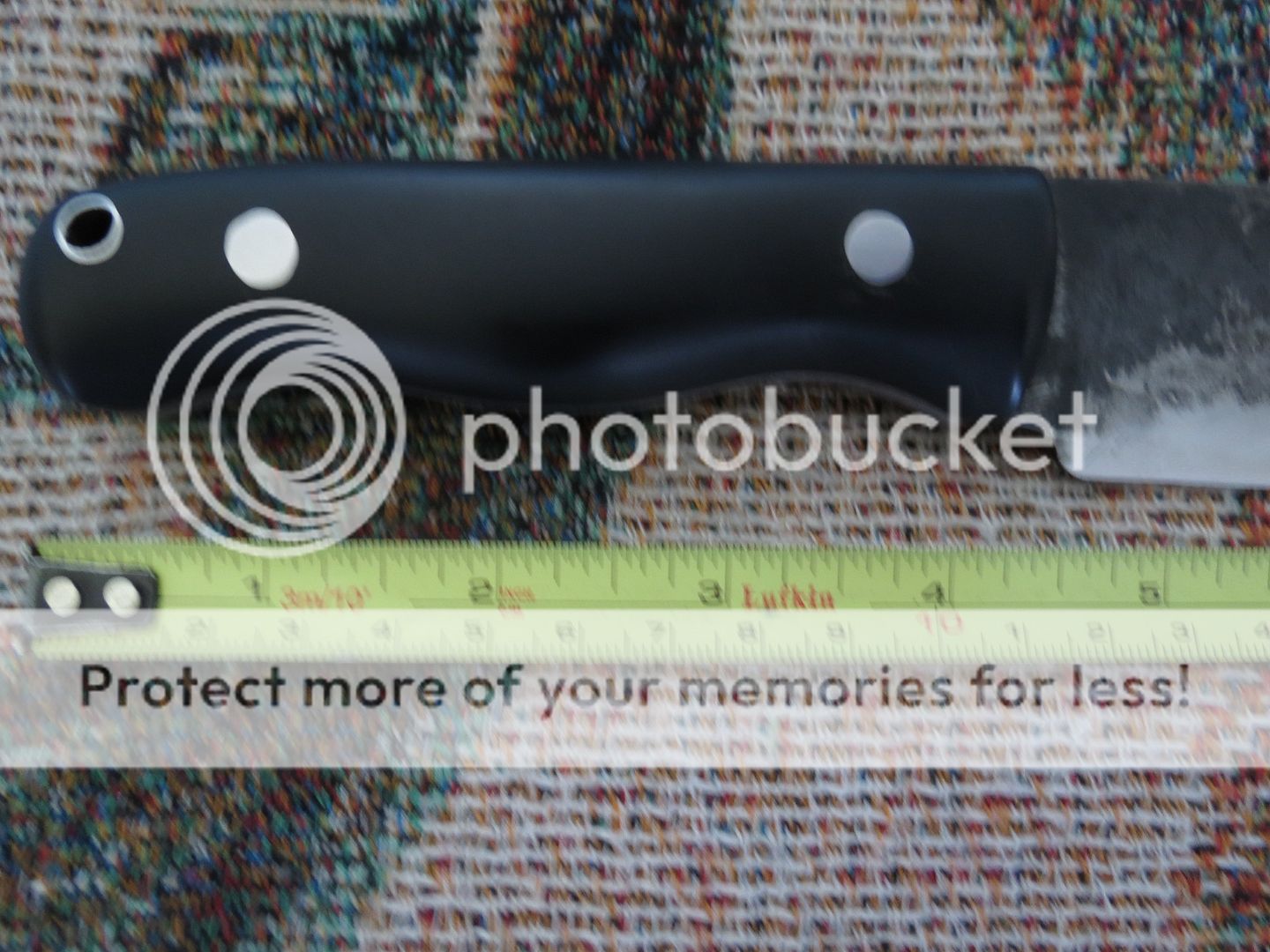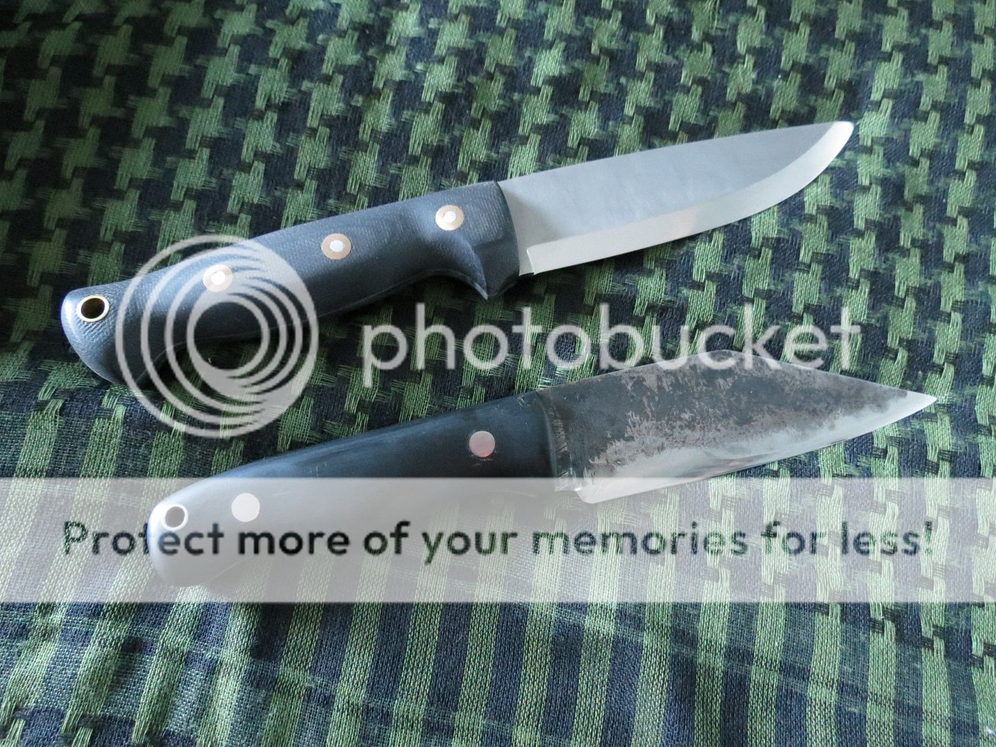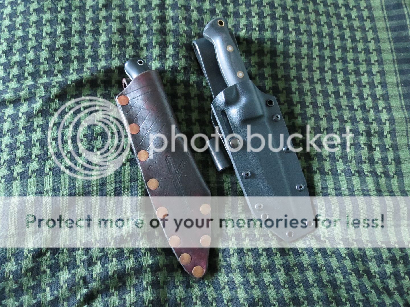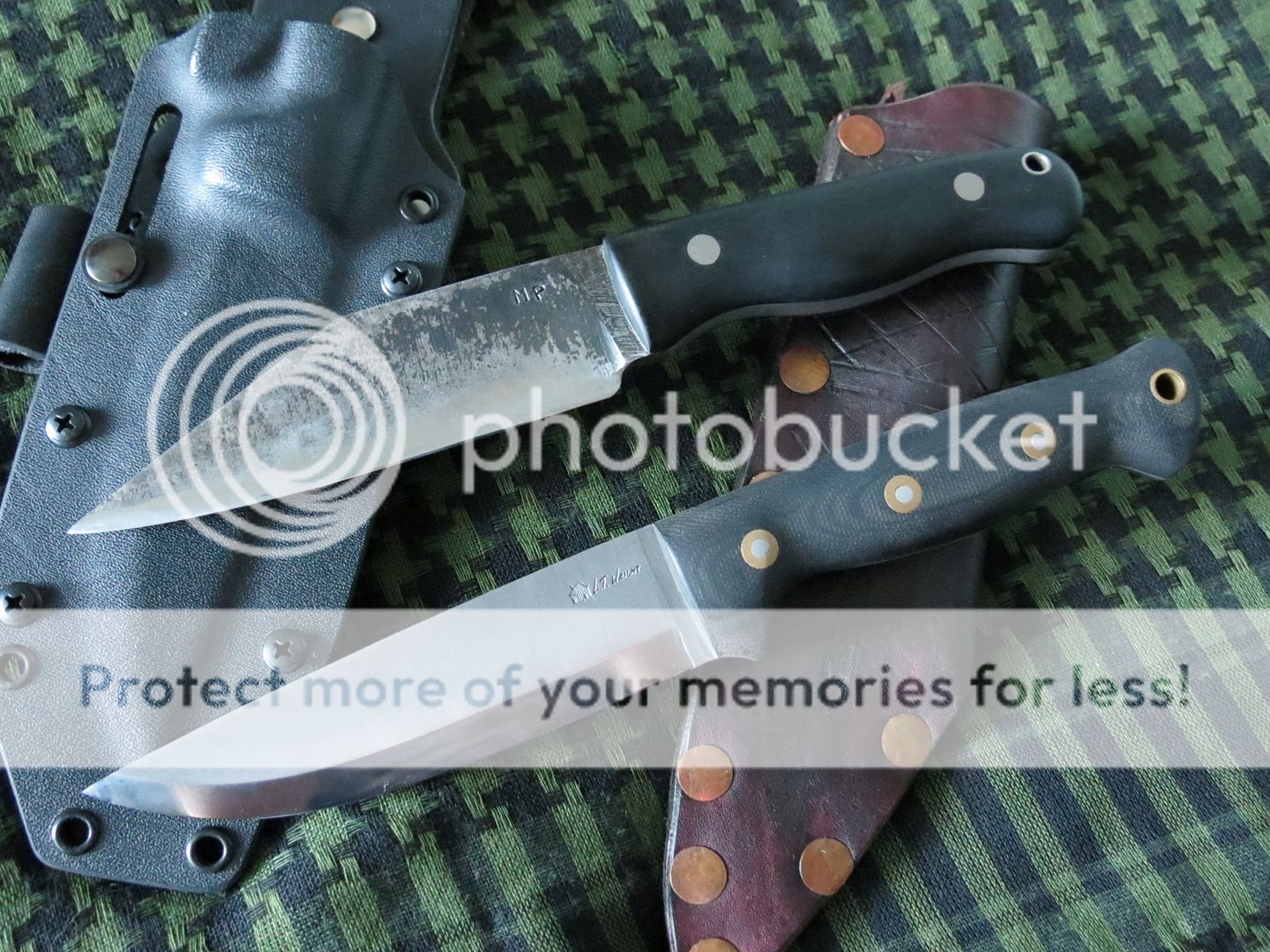 Next up is a MP (Matt Paul) Drifter Seax - Used, like new. I forget what steel this is (5160?), but it holds a great edge and is easy to sharpen. Flat ground to a convex edge. Black paper micarta, stainless pins with a leather sheath (not my best work, but it protects you from the blade and vise versa). $300.00 USD shipped.