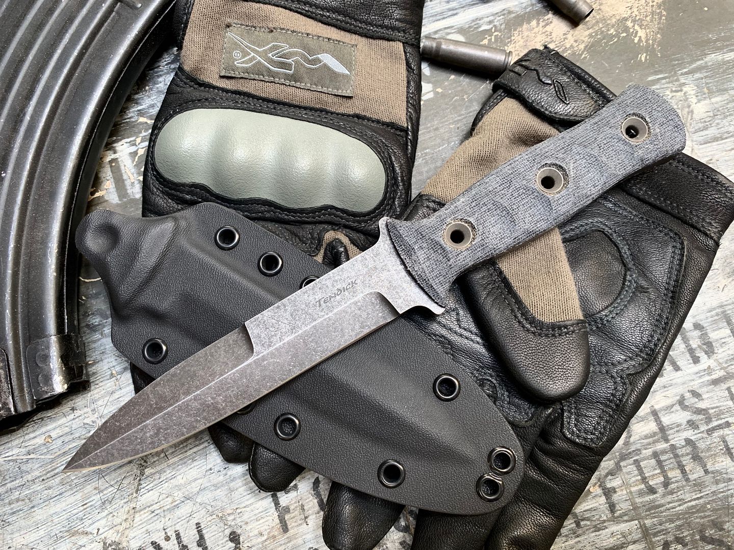 This is my version of the legendary M3 Trench knife. This full tang version features CPM 3V steel and Tero Tuf scales. A combo that is as durable as it gets. The top edge as standard is dull, but can be sharpened before shipping if requested.