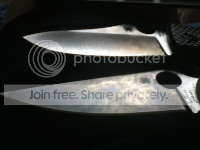 PS: the patina is tricky to photograph these two pics were taken with in minutes of each other and I was sitting in the exact same spot. Same side of the Military M4 blade. Hard enough to see the patina let alone the blue but it is there.