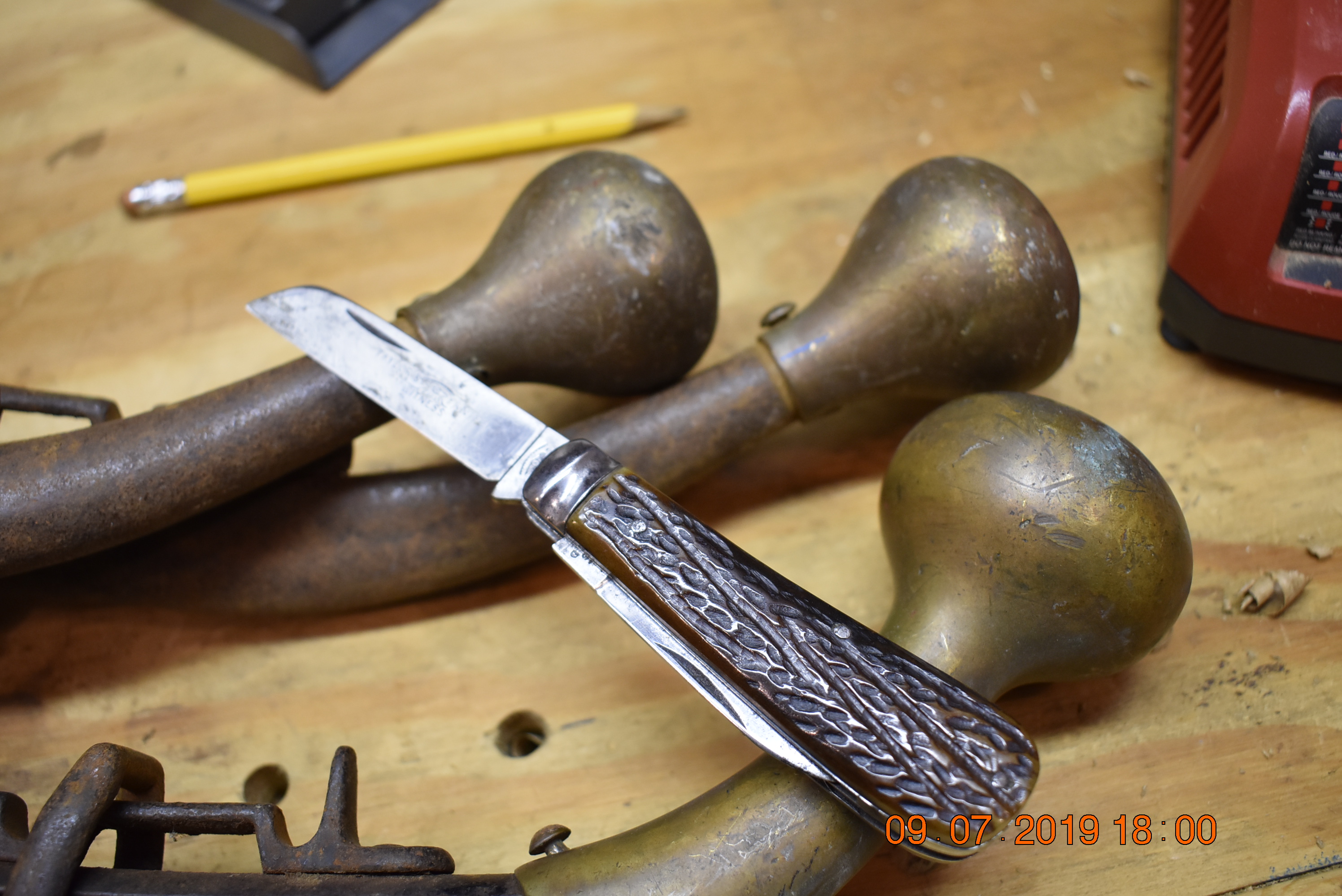 I understand your view regarding the ivory on the Jenner & Knewstub - if you look in Flook's book you will see the same knife in ivory except instead of a hoof pick there is an awl - but ivory for sure. IMO that suggests that the knife was not a special custom - definitely I agree the "norm" for sportsman's knives was/is stag. No doubt despite the abundance of ivory (the Rodgers Ivory room always comes to mind) it was considered a higher end fancy handle (especially when MOP was not a possibility) - exhibition knives of the period had high end stag, ivory or MOP. I'm not sure if I am correct but my impression has been ivory is fairly durable as is stag - and we do find chips and cracks in both handles on old knives - though stag was used on field knives there were other examples of ivory especially on larger jack knives (and perhaps not the same but the handles of many Bowies were also ivory). MOP is no doubt the most fragile imo - and unfortunately MOP cracks and chips really stand out... I also think whether this handle was stag or ivory there would have been chips in the same place - I am guessing that because the hoof pick is so tight that somebody lost their patience and hammered away at it to get it opened
