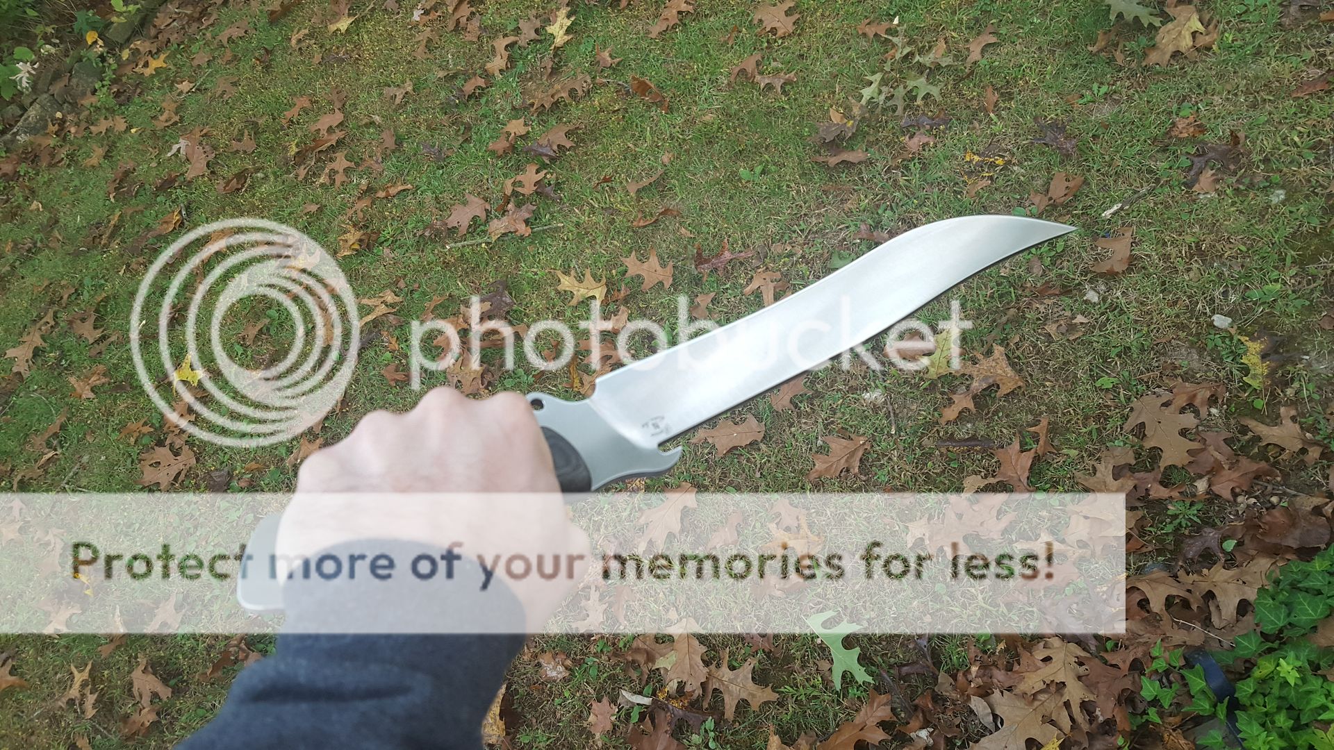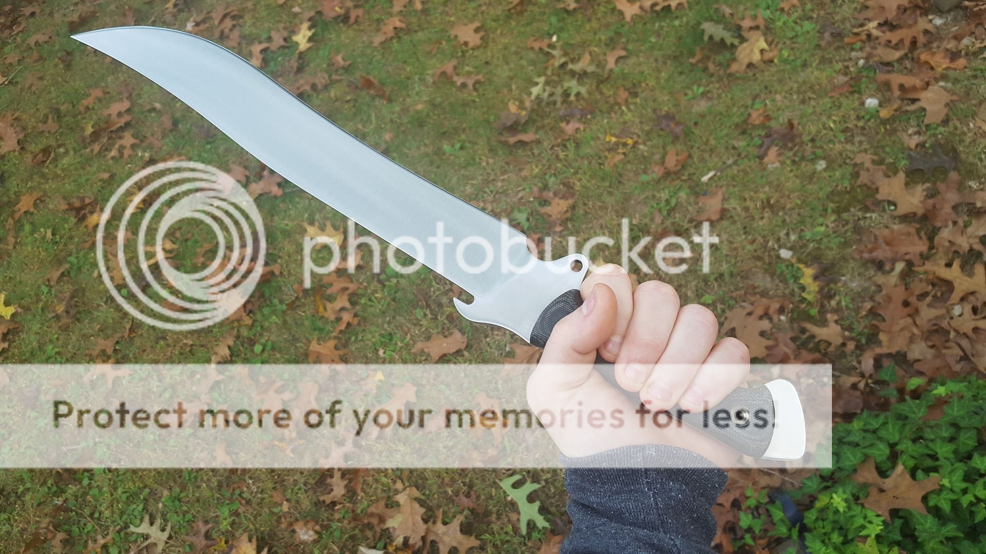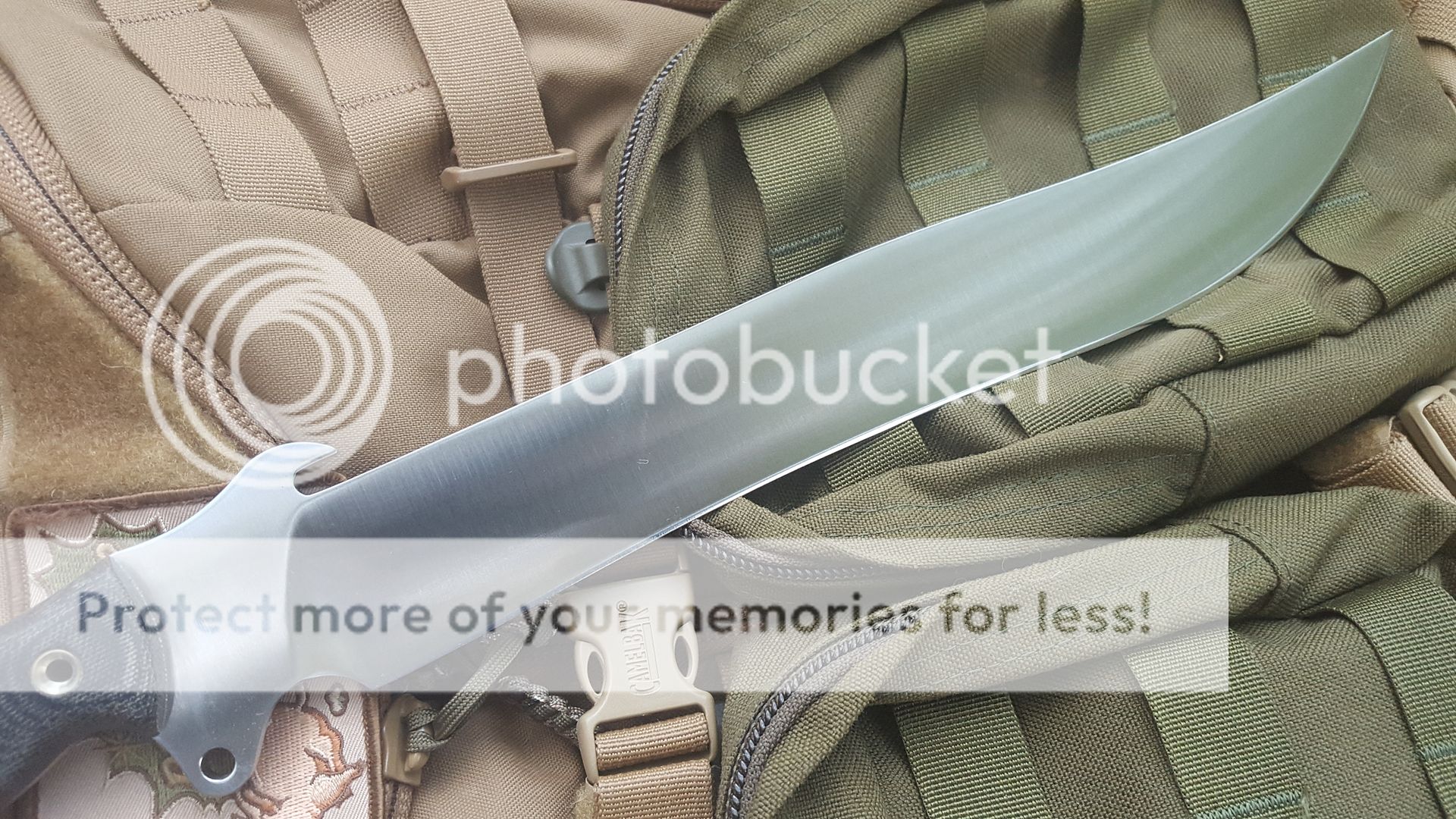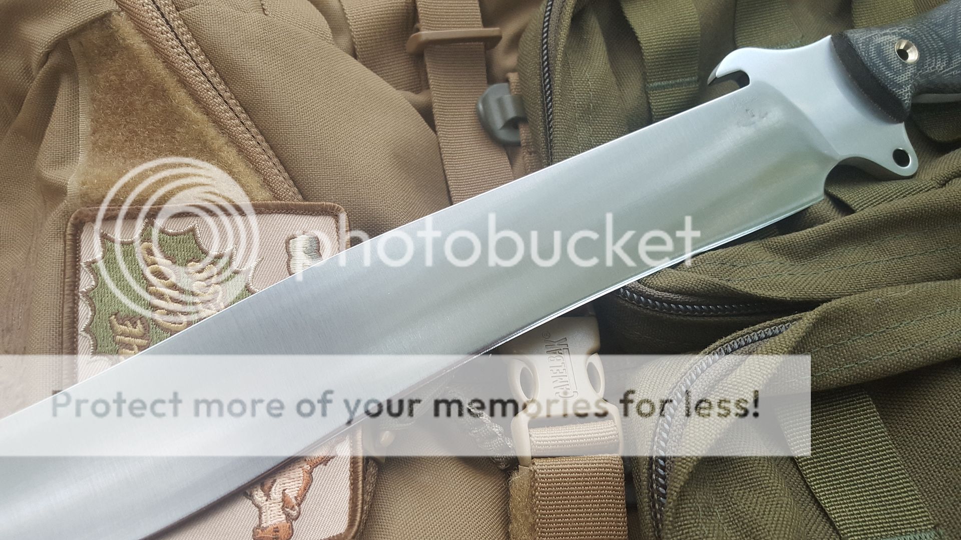 It is .248" thick, 14" blade, 19 3/8" overall length, and so remarkably fast in hand you won't believe it. They're full flat ground, so thin and ground on that you can see the INFI wrinkles. When this knife was ground out it looks like there were 2 slight imperfections because if you look hard enough, you can see 2 faint little dimples that I tried to capture.