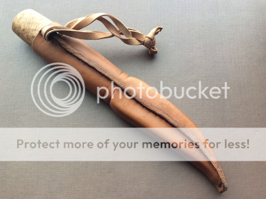 Blade steel is 80crv2 machine finished 3.62" cutting edge, thickness 0.125"and width 0.82". Blade is forge finished near the spine. Razor sharp. Stabilized oak burl handle, extremely hard. Leather sheath with wooden inlay and back seam, impregnated with beeswax.