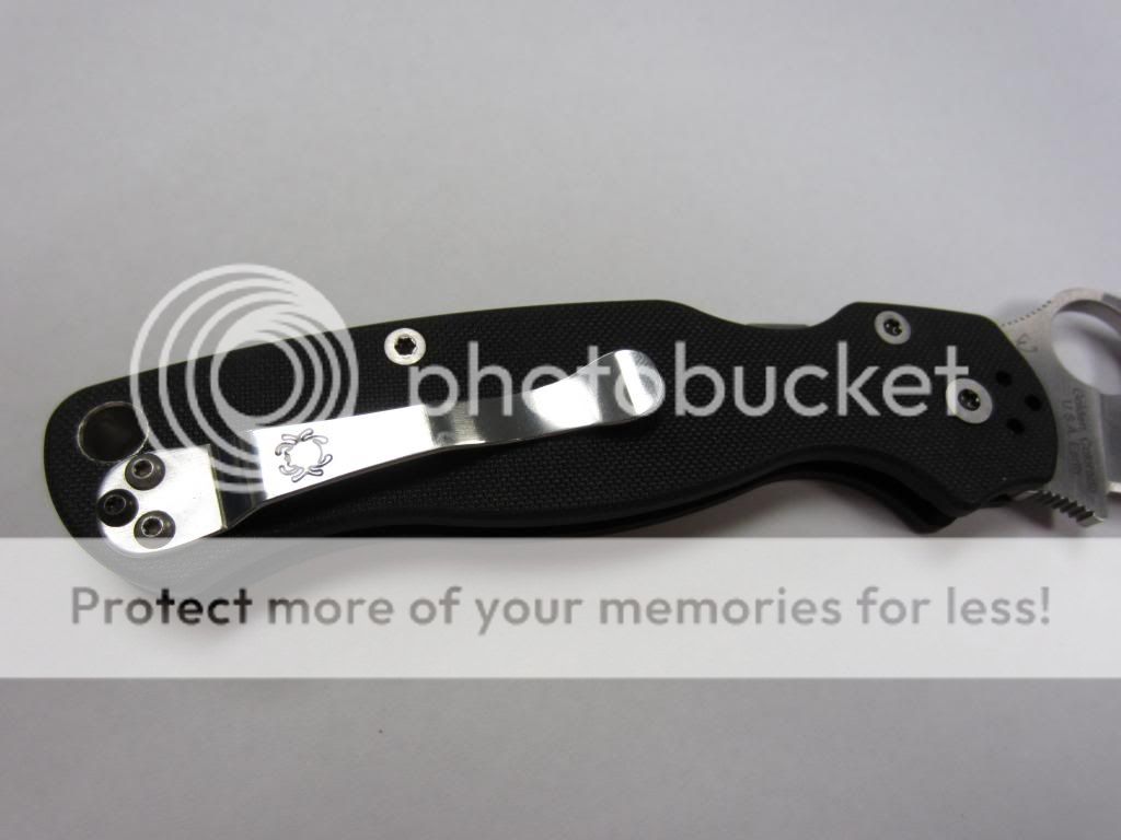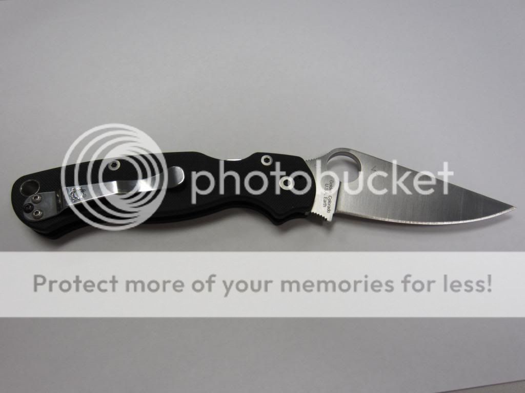 (traded-gone) 3Rd is a Paramilitary 2 black G10 satin blade...the blade is new, what happen was one of the black screws broke during a scale swap.. So I send it in and Spyderco replace one screw but they use satin. When I got it back...it was one screw satin, others were black. I just sanded off all the black screws to make them match. All works like new...smooth and not sticky.