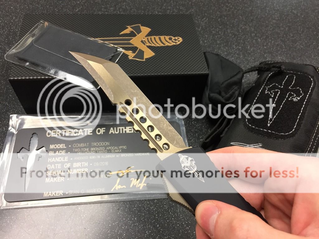 For sale is my Marfione Custom Hellhound. I purchased this direct from a dealer. It has not been carried or used to cut anything. It will come with everything shown. Outer box, inner case, soft sleeve, signed warranty card and polishing cloth.