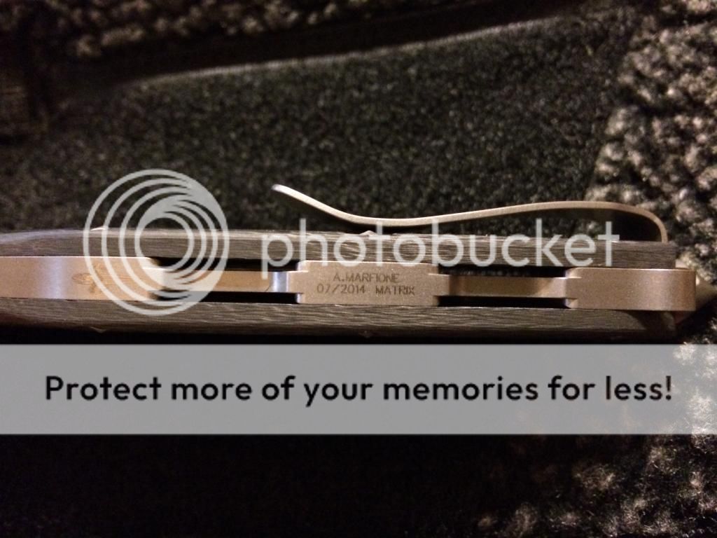 1. Marfione Custom Matrix full size. New in box. Hand ground stone washed blade, 30k layer CF handle. Very rare. $XXXX shipped. SOLD AND SHIPPED
