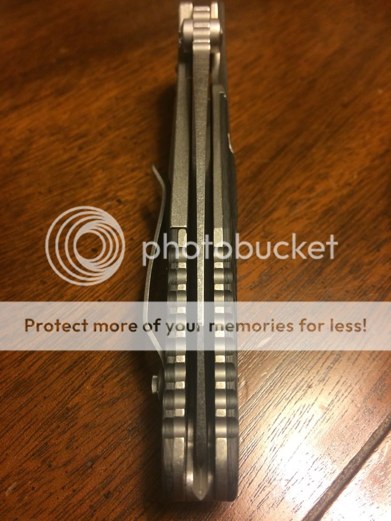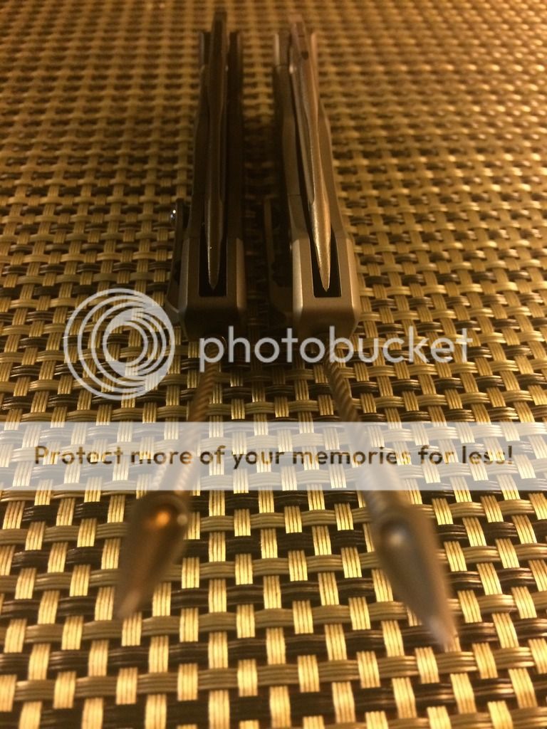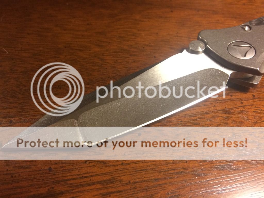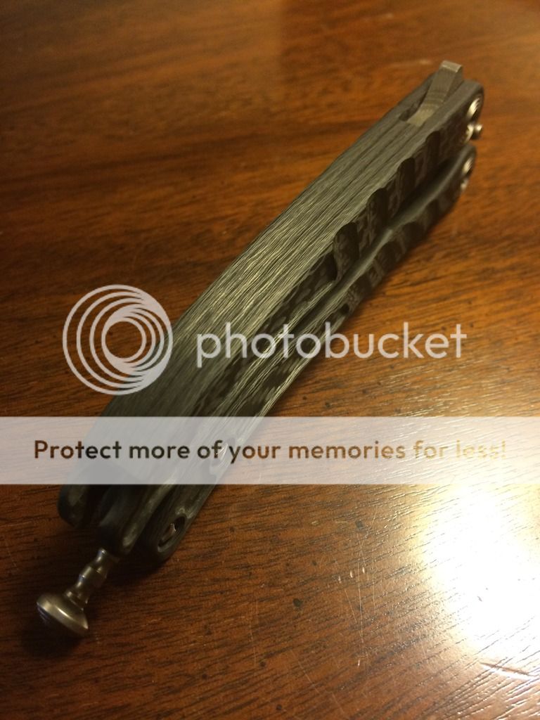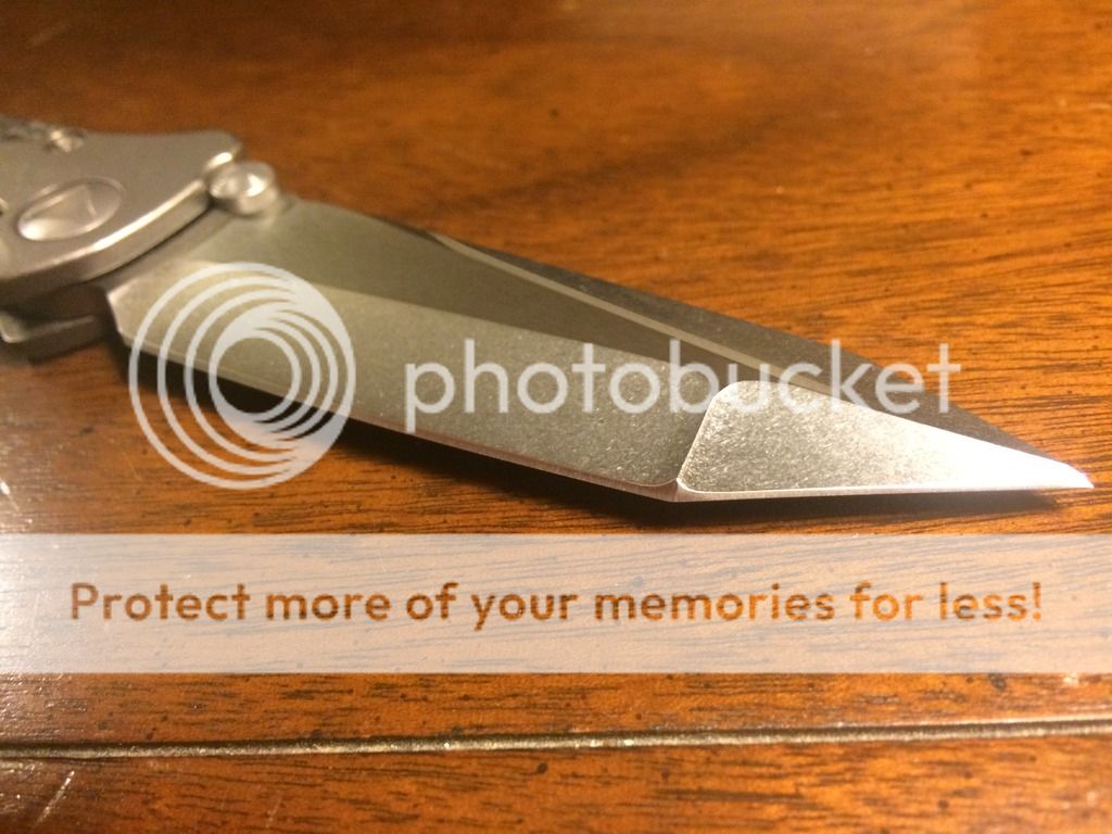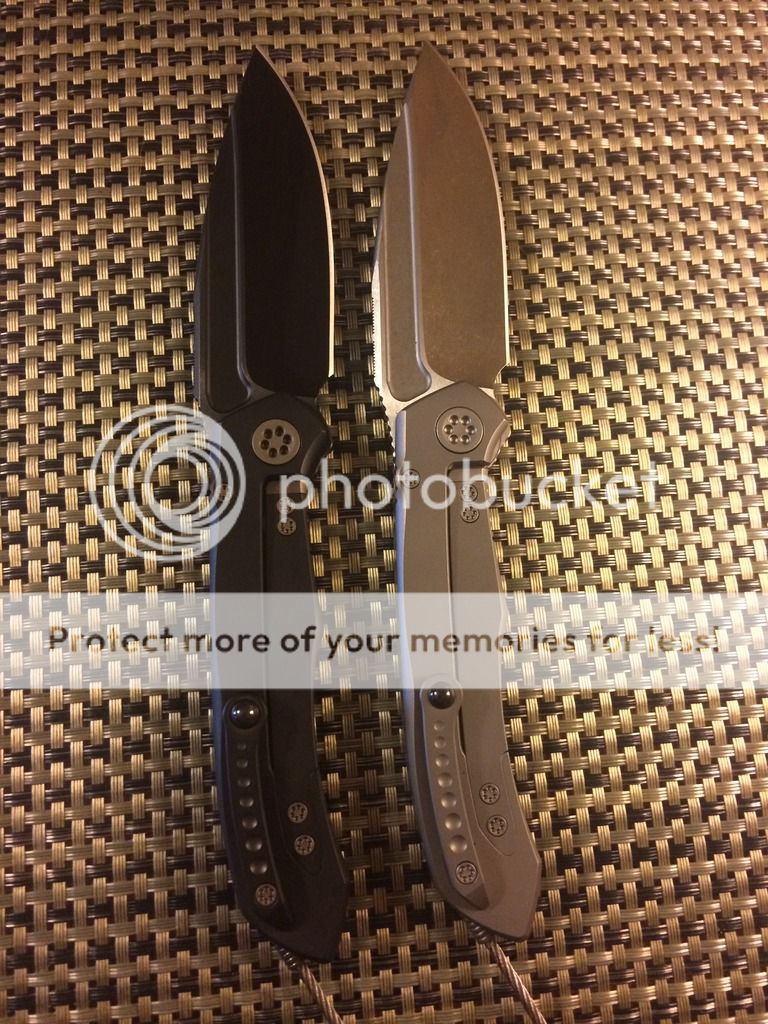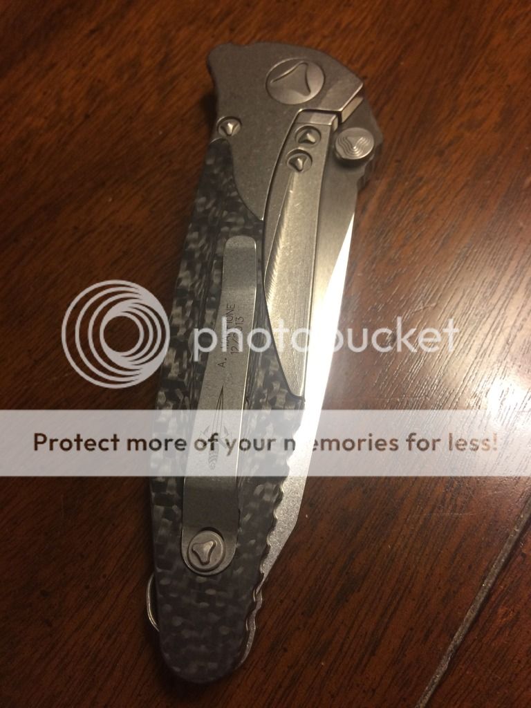 1. Socom Bravo with a stonewashed tanto blade. Distressed Ti handles with carbon fiber scales. It comes with the older style white Marfione box with black zipper pouch. It is in like new excellent condition. Never carried or used. $SPF
