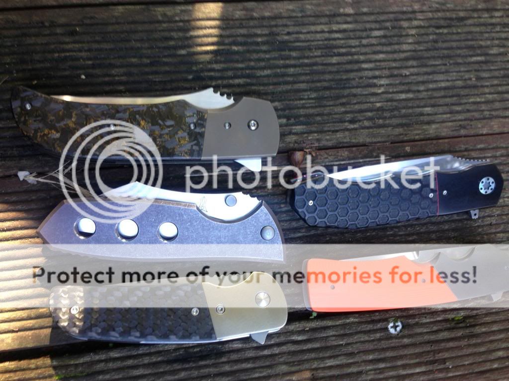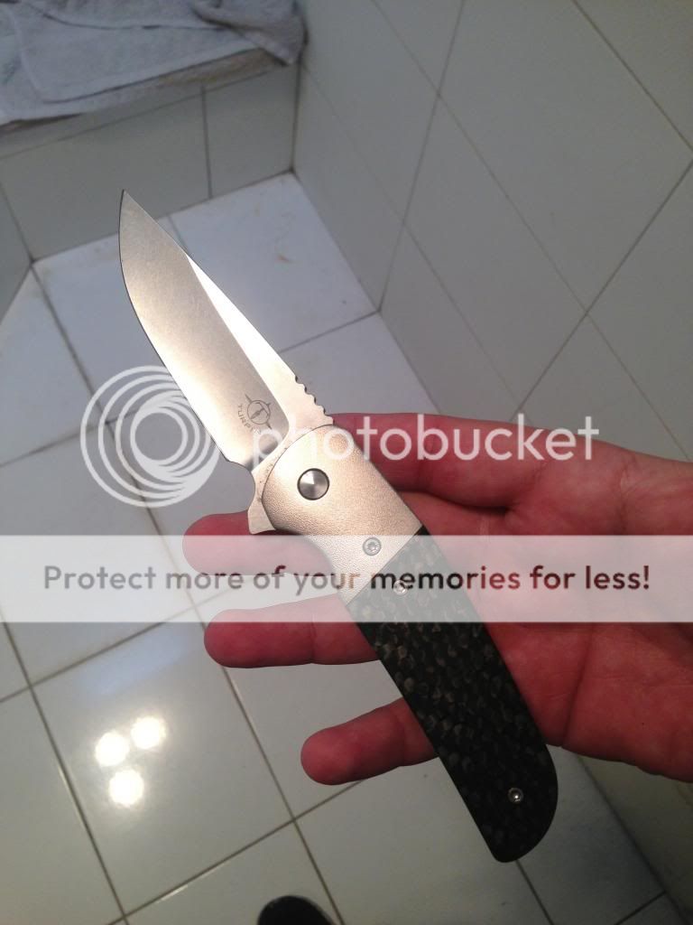 handle:Titanium frame lock, orange peeled bolster/frame and clip with carbon fibre scale