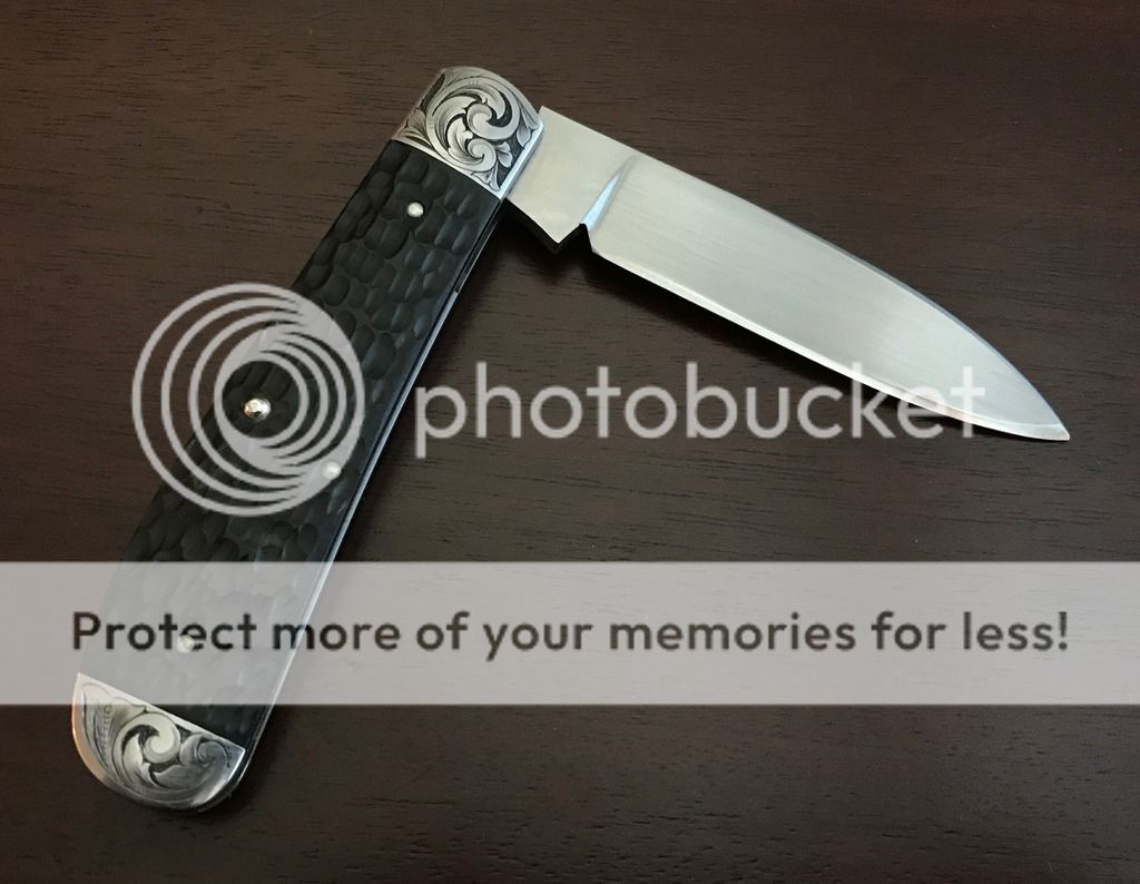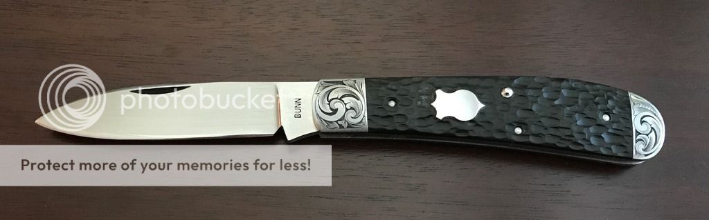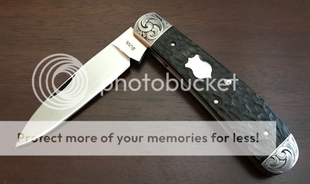 Master Smith Steve Dunn - engraved slipjoint. This has been lightly used and carried, but to no ill effect. The knife has been well cared for and is just like I purchased it. Action is superb - smooth, but crisp. Some light peeks through between spring and liners - but a small amount. Knife is razor sharp.