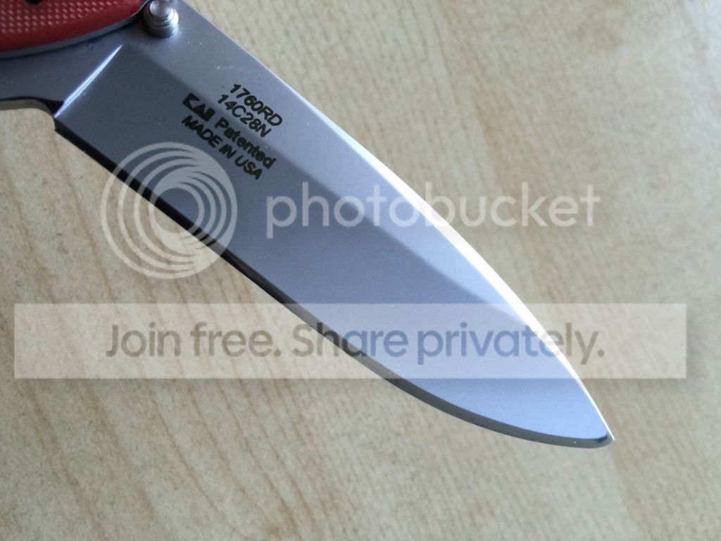 Kershaw Skyline red. Bought here on exchange. came the way it is. Sharpened, rounded point, somewhat discolored scales and scratches on the top of clip and screws. Price is $old shipped.