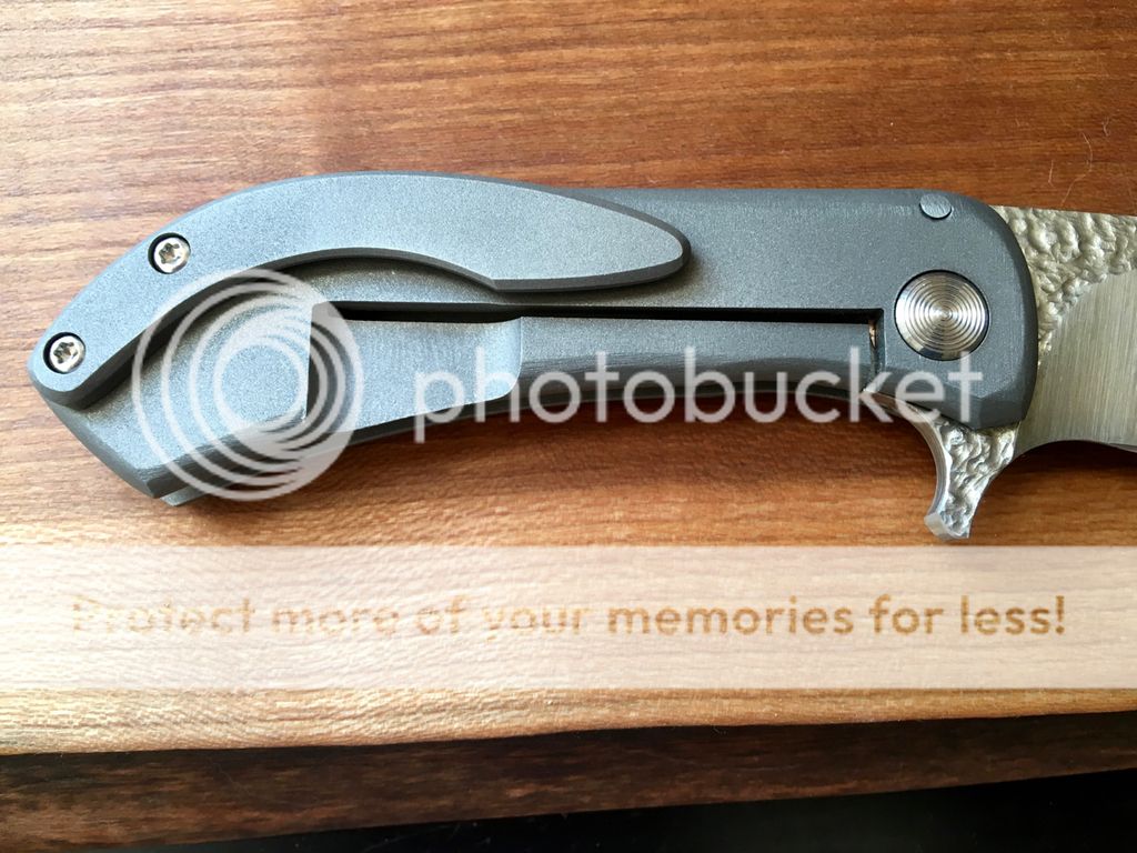 The handles are .150 titanium blasted to an even grey. They have heavy .250 pivot pins and hardened stainless stop pins. The action is nice and smooth and the detent is secure.