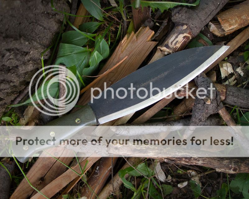 Why is all that spec stuff interesting to me. Well, for one, I am took cheap to buy a knife and then spend the time to hack it up, so I am going to build one similar. Second, it gives me insight to what he may be on to with this knife, performance-wise. I have already mentioned that I am normally not a fan of knives in this size range. However, most knives of this size are generally around 3/16” or 1/4” thick. I think that is part of my turn off to them. They carry too much mass for their size, and yet are not long enough to really chop with. This knife, however, reminds me of a thick machete. Its sides are left flat and the grind is just sort of a scandi, or more likely a scandi-vex grind. In my opinion this is a good choice, because with the thinner blade, the full size will give it some blade mass and a knife this size is good for splitting wood, and that grind is great for it. I think I am really beginning to see the usefulness of a knife like this. Enough that I wanted to build one for myself and give it a go.