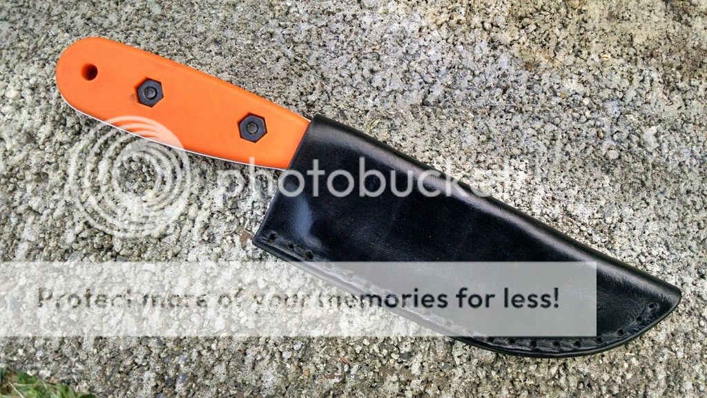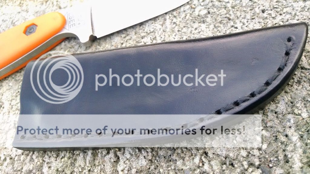 Brian graciously hooked me up with this sweet little slab of leathery goodness! The sheath provides a satisfying little snap when sheathed and is nice and snug with no wiggle, wobble, or fear of slipping out. The edges are finished nice and smooth, the stitching is perfect, overall feels real nice in hand and pocket.