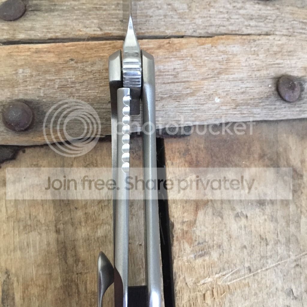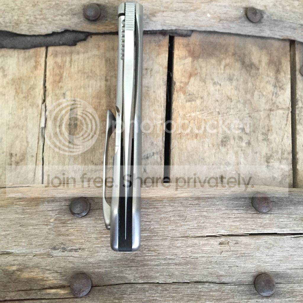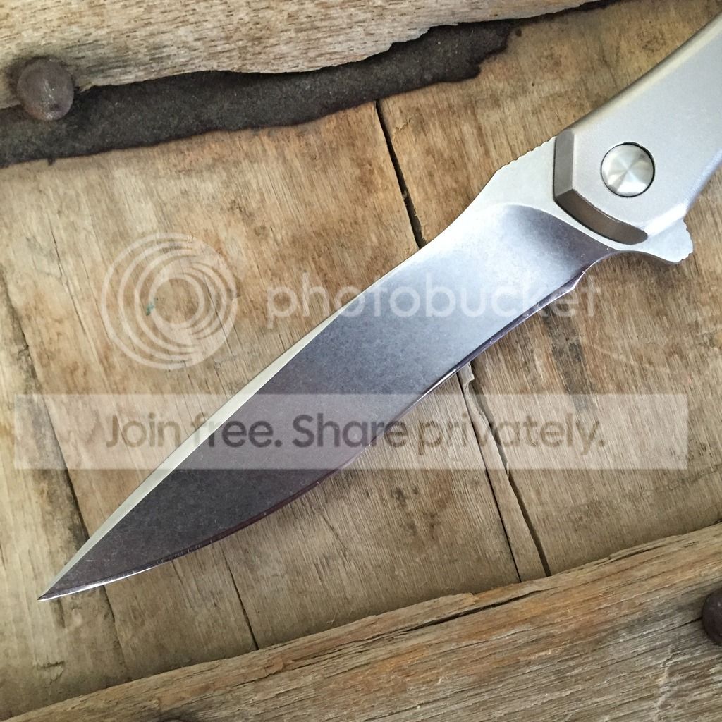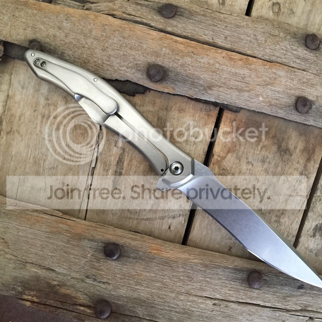 I have a McGinnis Mini Intake from this years Miami show. It has a fine bead blast giving it the egg shell appearance with a fine stonewash on the blade. It has a 3.5" blade and is 8" overall. Very light and great for EDC. Previous owner never carried or used it, and I carried it once never used. It has Gerry's 3 finger sticky sharp edge on it. Flips great like all McGinnis knives and is smooth. No visual wear and tear that I can find this knife is in excellent condition!