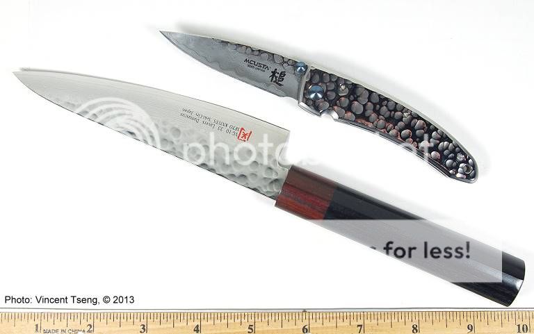 Mcusta 113D with the blade of a SETO I-5 santoku with tsuchime pattern.