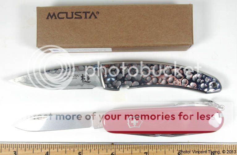 The Mcusta 113D is the small version in the MC-11 series - 3.5" closed, with a 2.75" blade, and solid 420J2 stainless steel handles -