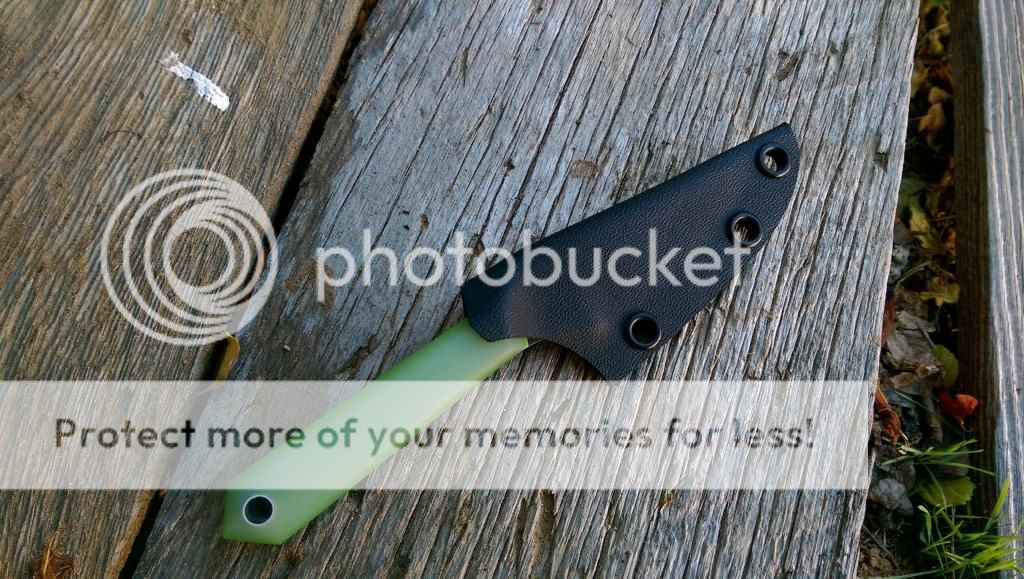 Comes with kydex sheath spaced for large tek lok (1.5 inch spacing)