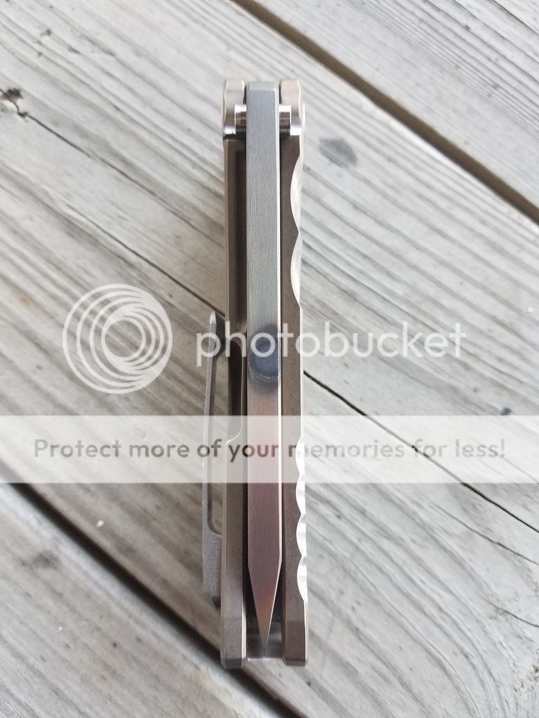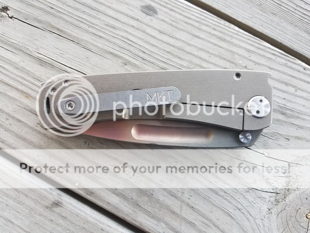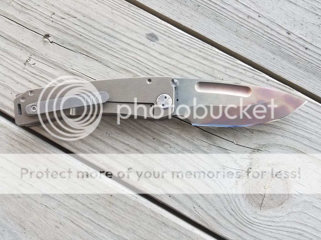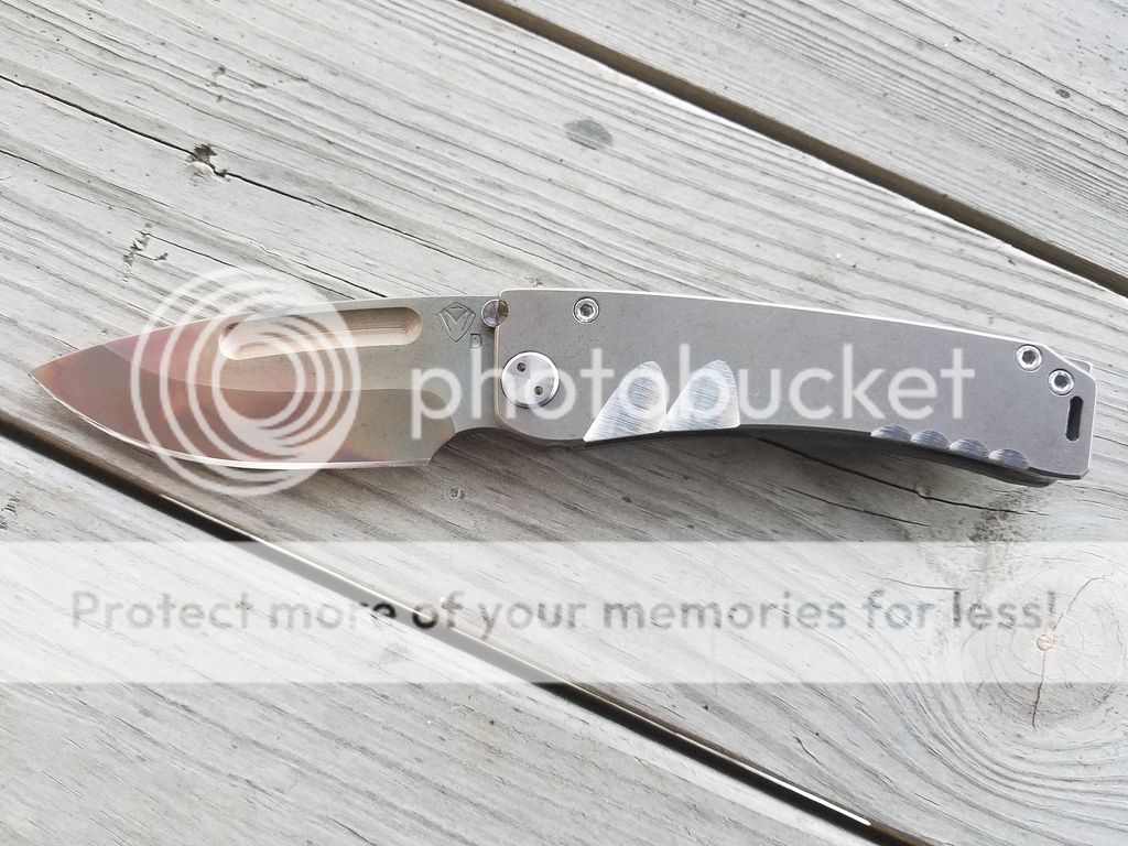 Hey all! I have a Medford Marauder up for sale/trade. This is a Vulcan finished D2 blade with bronze anodized handles and post process grind finger grooves. This knife opens and closes like glass. ZERO lock stick and absolutely no play in any direction, rock solid. It's a one hand opener as well but still has a strong detent. The lock up is around 15%. It's been carried lightly and used to cut some cardboard. No hard use at all. It still pops hairs but could use a stropping which I don't have right now. Medford sharpens for free for life as well. It has NOT been opened or messed with in any way. There is some very light rub marks on top for the show side scale and hair line scratch on the pocket clip that is barely noticeable. Otherwise its about 90% condition. Comes with all of the paper work and box. This knife comes from Martin's coins and firearms. I will include a link to the video where Greg handles this exact knife. It has a very unique Vulcan finish which can't be mistaken with any other Marauder. One of a kind.