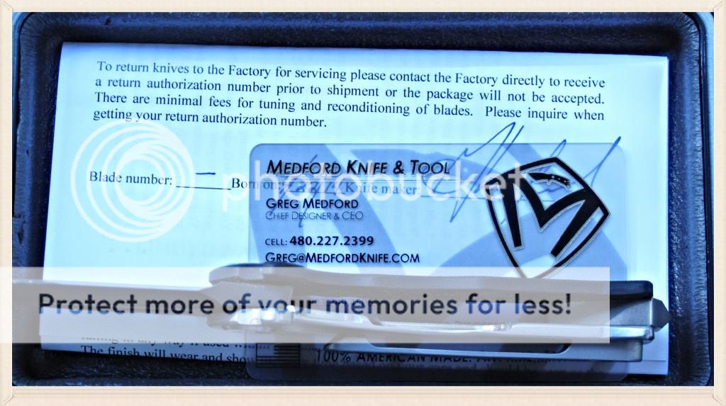 Carried a couple times, has cut nothing but paper. Tiny spot on pivot makes it LNIB. Hard Case and all papers.