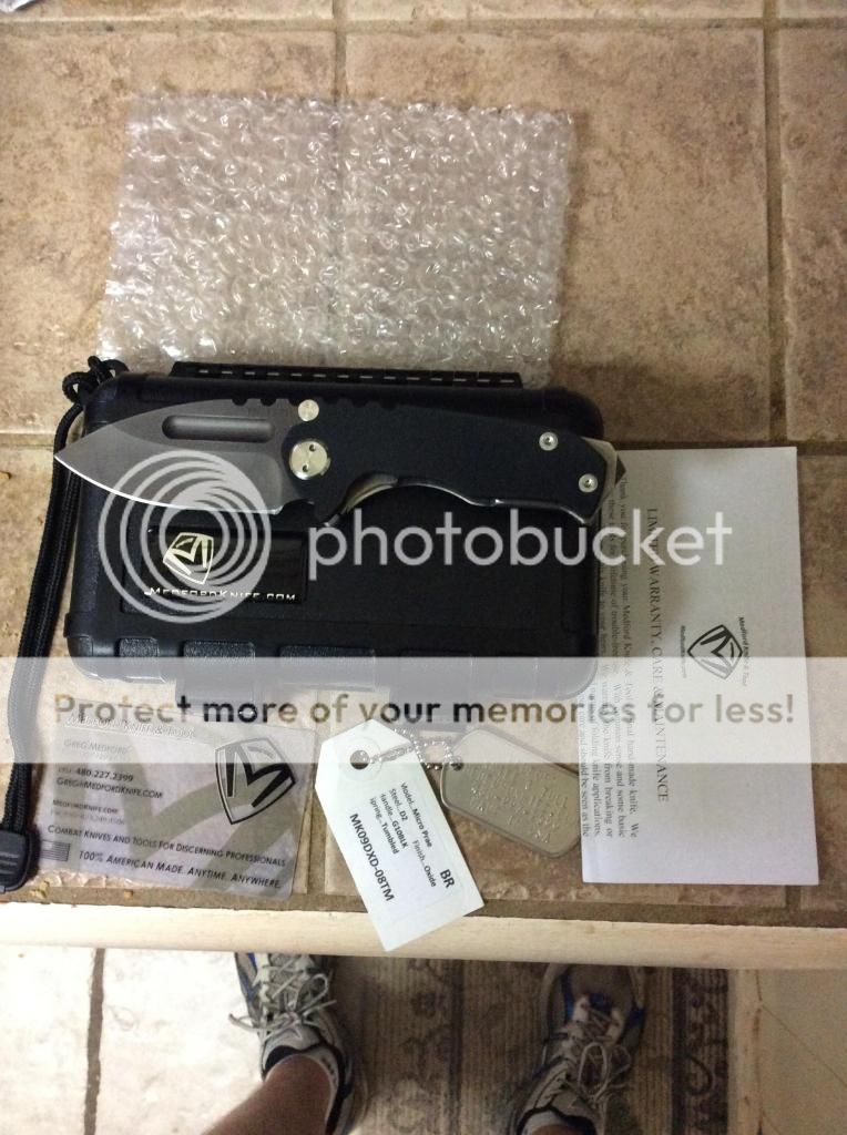 First up is a Medford Micro Praetorian. It is black with a black oxide blade. I received this in a trade as lightly used and I have not used or carried it. The lock is a bit sticky but the stick should go away as it continues to break in. These knives have amazing tolerances and it is no surprise that the blade is centered and the lockup is rock solid. Comes with everything pictured. I'm asking TRADED and I pay the Paypal fees and shipping.