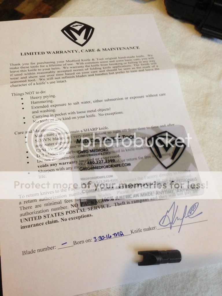 ** PLEASE READ!!!!!*** the knife had been taken apart which VOIDS THE WARRANTY. They will still fix any issue that may arise in the future but you would have to pay for the repair. (highly unlikely any issue will arise) THIS IS CONSIDERED IN THE PRICE ((item is cross posted))