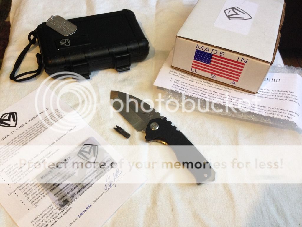 Up for sale is my Medford praetorian genesis. It's the new size between the full size praetorian and the micro praetorian. Perfect edc size- feels great in the hand. This one has black g10 and stonewashed D2 blade. Perfectly centered, smooth, solid / early lock up. Has been carried about 3 times but never used- blade / handles look new. Comes with everything from factory (I'm original owner- paid $600 last month) I just haven't been carrying it so I'm going to pass her along to someone who will use it!
